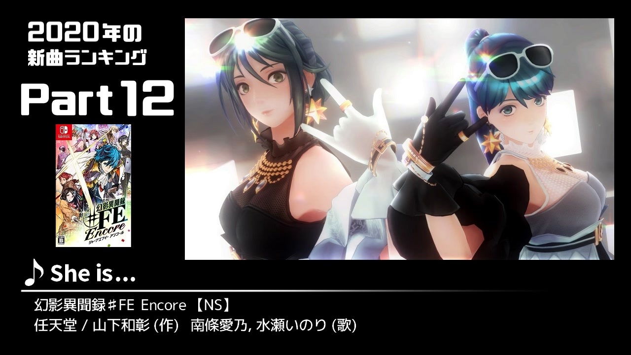 Part12です。61位~41位の21曲を収録。<br>※一番最後の曲はネタバレ防止のためスクショの一部を切り抜いて使用しています<br><a href="https://www.nicovideo.jp/watch/sm39043111" class="watch">sm39043111</a> ←前【<a href="https://www.nicovideo.jp/mylist/70960801" target="_blank" rel="noopener">mylist/70960801</a>】次→ <a href="https://www.nicovideo.jp/watch/sm39111010" class="watch">sm39111010</a><br><br><br><br><br>SS収集状況&メールフォーム:<br><a href="https://kara-age.blogspot.com/2021/05/2020ss.html" target="_blank" rel="noopener nofollow">https://kara-age.blogspot.com/2021/05/2020ss.html</a><br>ゲーム・サントラの購入先をまとめたやつ:<br><a href="https://kara-age.blogspot.com/2021/05/2020.html" target="_blank" rel="noopener nofollow">https://kara-age.blogspot.com/2021/05/2020.html</a><br>