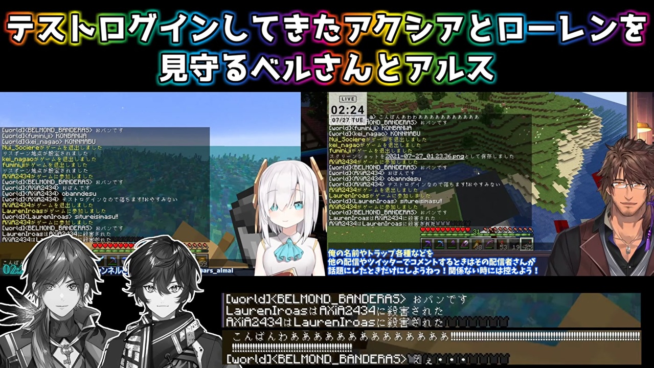 いやはや、最近の新人さんは随分とじゃれ合いが激しいんだな<br><br>本家参考動画<br>・ベルモンド・バンデラス<br>【Minecraft】これよりシュルカートラップ建築を開始する!【にじさんじ鯖】<br><a href="https://youtu.be/PoJW2YPjDzw" target="_blank" rel="noopener nofollow">https://youtu.be/PoJW2YPjDzw</a><br>・アルス・アルマル<br>#11【Minecraft 】 幻の青ウーパー探してみる~運試し~ season3【アルス・アルマル/にじさんじ】<br><a href="https://youtu.be/RyFP3J-uN44" target="_blank" rel="noopener nofollow">https://youtu.be/RyFP3J-uN44</a><br><br>参考元チャンネル&Twitter<br>・ベルモンド・バンデラス<br><a href="https://www.youtube.com/channel/UCbc8fwhdUNlqi-J99ISYu4A" target="_blank" rel="noopener nofollow">https://www.youtube.com/channel/UCbc8fwhdUNlqi-J99ISYu4A</a><br><a href="https://twitter.com/belmond_b_2434" target="_blank" rel="noopener nofollow">https://twitter.com/belmond_b_2434</a><br>・アルス・アルマル<br><a href="https://www.youtube.com/channel/UCdpUojq0KWZCN9bxXnZwz5w" target="_blank" rel="noopener nofollow">https://www.youtube.com/channel/UCdpUojq0KWZCN9bxXnZwz5w</a><br><a href="https://twitter.com/ars_almal" target="_blank" rel="noopener nofollow">https://twitter.com/ars_almal</a><br>・アクシア・クローネ<br><a href="https://www.youtube.com/channel/UC8oPnditPSp5lZu45fnXWCA" target="_blank" rel="noopener nofollow">https://www.youtube.com/channel/UC8oPnditPSp5lZu45fnXWCA</a><br><a href="https://twitter.com/AXIA_96NE" target="_blank" rel="noopener nofollow">https://twitter.com/AXIA_96NE</a><br>・ローレン・イロアス<br><a href="https://www.youtube.com/channel/UCgmFrRcyH7d1zR9sIVQhFow" target="_blank" rel="noopener nofollow">https://www.youtube.com/channel/UCgmFrRcyH7d1zR9sIVQhFow</a><br><a href="https://twitter.com/Lauren_iroas" target="_blank" rel="noopener nofollow">https://twitter.com/Lauren_iroas</a><br><br>ニコニコのダイコンマンリスト<br>「バーチャルYouTuberシリーズ」↓<br><a href="https://www.nicovideo.jp/mylist/62551838" target="_blank" rel="noopener">mylist/62551838</a><br>「バーチャルYouTuberシリーズ2」↓<br><a href="https://www.nicovideo.jp/mylist/67858437" target="_blank" rel="noopener">mylist/67858437</a><br>「バーチャルYouTuberシリーズ3」↓<br><a href="https://www.nicovideo.jp/mylist/71340675" target="_blank" rel="noopener">mylist/71340675</a><br><br>ダイコンマンのTwitter<br><a href="https://twitter.com/Daikon_Man_V" target="_blank" rel="noopener nofollow">https://twitter.com/Daikon_Man_V</a>