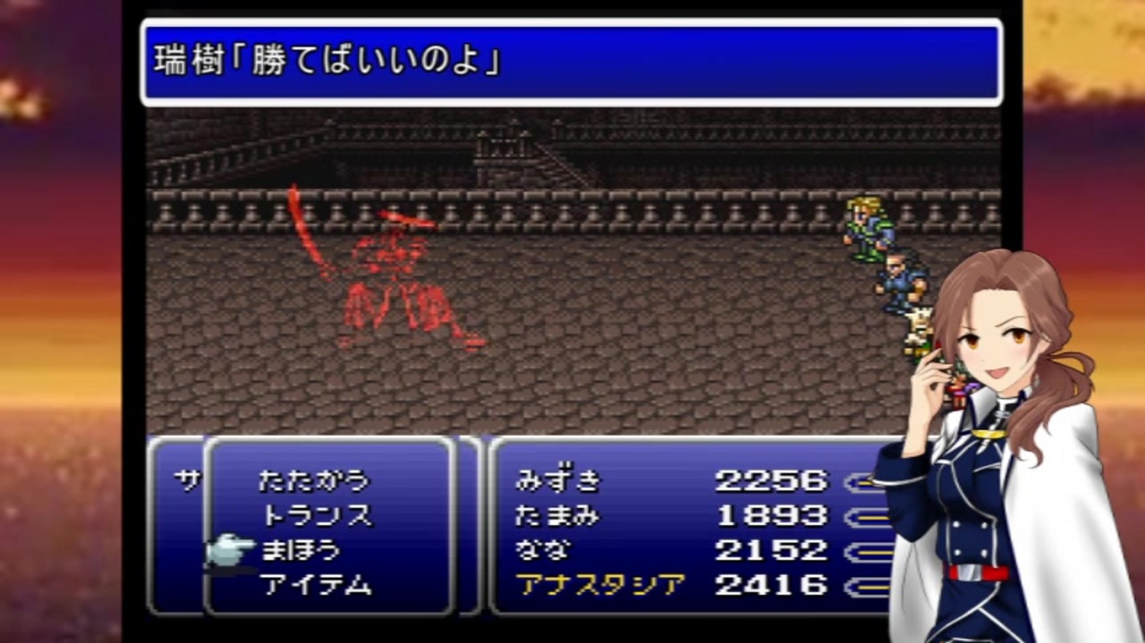 FF6×デレマスの架空戦記シリーズです。<br>今回は古代城の探索です。<br>道中の宝箱にいる敵はこういう倒し方があるという感覚で見ていただけたら幸いです。<br><br>立ち絵はシロP様、ゆでだこP様よりお借りしています。<br>また、FF6キャラ風立ち絵をシロP様、なんくるなるさP様が描いて下さっています。<br>ありがとうございます!<br><br>(2021/8/9 追記)<br>たくさんのニコニ広告ありがとうございます!<br><br>広告者様<br>ラツマP様、らっきぃ☆すたぁ様、TOWER様、werver様、セイル様、花猪口P様、ABI丸様、eso様、聖奈P様、笠谷様、デサイー様、黒魔道士様、ツョウ様、ヤームチャ・ベルモンド様、ラルシ様、播州P様、なんくるなるさP様、Poteti500X様、bandol/ジオスミンP様、擬態人形P様、フォルティア様、日本國有鐵道株式會社様、joe様、fuji様、ka-2様、雷牙様、Akome様、夜伊様、杜仲様、デスペラード様、sada様、ノーム様、k,k様、chem様、ふぇりさ様、ヴァルシオーネ様、金剛快速様、sunatuki様、siroP様、one様、こくまろみるく様、ケンケン様、hh様<br><br><br>FF6架空戦記マイリス→<a href="https://www.nicovideo.jp/mylist/68519564" target="_blank" rel="noopener">mylist/68519564</a><br>ヨッシーアイランドシリーズもどうぞ→<a href="https://www.nicovideo.jp/mylist/71035405" target="_blank" rel="noopener">mylist/71035405</a><br><br><br>前:<a href="https://www.nicovideo.jp/watch/sm38947569" class="watch">sm38947569</a><br>次:<a href="https://www.nicovideo.jp/watch/sm39152384" class="watch">sm39152384</a>