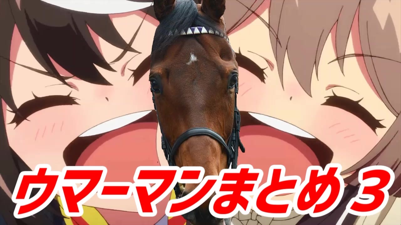 <strong>前々走(5月時) </strong><strong><u><a href="https://www.nicovideo.jp/watch/sm38780158" class="watch">sm38780158</a></u></strong><br><strong>前走(6月時) </strong><strong><u><a href="https://www.nicovideo.jp/watch/sm38963252" class="watch">sm38963252</a></u></strong><br>↑<br>動画内容がわからないマン向け<br>特に前々走を見ればなんでこんなことしてるのかわかるよ<br><br><br>課題に追われて7月中に間に合わんかった…<br><s>ついでに同じく間に合わなかった7月のうまぴょいまとめにも負けた</s><br><br>リスペクト元 <a href="https://www.nicovideo.jp/watch/sm33044988" class="watch">sm33044988</a><br><br>前置きで紹介させていただいた動画(左から下方向順に)(文字数の関係でタイトルと投稿者名は省略してますごめんなさい)<br>〇実写ウマーマンシリーズ<br>・サニブ <a href="https://www.nicovideo.jp/watch/sm38797236" class="watch">sm38797236</a><br>・ソダシ <a href="https://www.nicovideo.jp/watch/sm38772149" class="watch">sm38772149</a><br>・トプロ <a href="https://www.nicovideo.jp/watch/sm38959601" class="watch">sm38959601</a><br>・ババヲナラスクルマ <a href="https://www.nicovideo.jp/watch/sm38528488" class="watch">sm38528488</a><br>・オジュウ <a href="https://www.nicovideo.jp/watch/sm39009279" class="watch">sm39009279</a><br>・レイパパレ <a href="https://www.nicovideo.jp/watch/sm38950947" class="watch">sm38950947</a><br>・メイケイエール <a href="https://www.nicovideo.jp/watch/sm38576975" class="watch">sm38576975</a><br>・メイショウサムソン <a href="https://www.nicovideo.jp/watch/sm38609025" class="watch">sm38609025</a><br>・キセキ <a href="https://www.nicovideo.jp/watch/sm39048699" class="watch">sm39048699</a><br>〇特撮ウマ娘<br>・タイガ <a href="https://www.nicovideo.jp/watch/sm38747944" class="watch">sm38747944</a><br>・セブン <a href="https://www.nicovideo.jp/watch/sm38869906" class="watch">sm38869906</a><br>・タロウ <a href="https://www.nicovideo.jp/watch/sm38695591" class="watch">sm38695591</a><br>・ビルド <a href="https://www.nicovideo.jp/watch/sm38784958" class="watch">sm38784958</a><br>・アマゾンズ <a href="https://www.nicovideo.jp/watch/sm38919546" class="watch">sm38919546</a><br>・クウガ <a href="https://www.nicovideo.jp/watch/sm38889956" class="watch">sm38889956</a><br>・デカレンジャー <a href="https://www.nicovideo.jp/watch/sm38674076" class="watch">sm38674076</a><br>・ゴレンジャー <a href="https://www.nicovideo.jp/watch/sm38798228" class="watch">sm38798228</a><br>・ゼンカイジャー <a href="https://www.nicovideo.jp/watch/sm39022106" class="watch">sm39022106</a><br>〇ポルノグラヒヒ^~ン<br>・ヒトリノ夜 <a href="https://www.nicovideo.jp/watch/sm38907531" class="watch">sm38907531</a><br>・メリッサ <a href="https://www.nicovideo.jp/watch/sm39002181" class="watch">sm39002181</a><br>・ラビュー・ラビュー <a href="https://www.nicovideo.jp/watch/sm38825693" class="watch">sm38825693</a><br>・ナイスギフト <a href="https://www.nicovideo.jp/watch/sm39036335" class="watch">sm39036335</a><br>・ハネウマライダー <a href="https://www.nicovideo.jp/watch/sm38563231" class="watch">sm38563231</a><br>・ミュージック・アワー <a href="https://www.nicovideo.jp/watch/sm38745080" class="watch">sm38745080</a><br>〇トミノブッピガン<br>・Gガンダム <a href="https://www.nicovideo.jp/watch/sm38805023" class="watch">sm38805023</a><br>・ターンAガンダム <a href="https://www.nicovideo.jp/watch/sm38941192" class="watch">sm38941192</a><br>・ガンダムSEED DESTINY <a href="https://www.nicovideo.jp/watch/sm38884444" class="watch">sm38884444</a><br>・ガンダムW(ブッピガン) <a href="https://www.nicovideo.jp/watch/sm38840323" class="watch">sm38840323</a><br>・ガンダムW(お前を殺す) <a href="https://www.nicovideo.jp/watch/sm39067662" class="watch">sm39067662</a><br>・ガンダムX <a href="https://www.nicovideo.jp/watch/sm39003517" class="watch">sm39003517</a><br>・閃光のハサウェイ <a href="https://www.nicovideo.jp/watch/sm39019189" class="watch">sm39019189</a><br>・ガンダムSEED <a href="https://www.nicovideo.jp/watch/sm38784184" class="watch">sm38784184</a><br>・ガンダムUC <a href="https://www.nicovideo.jp/watch/sm39062884" class="watch">sm39062884</a>