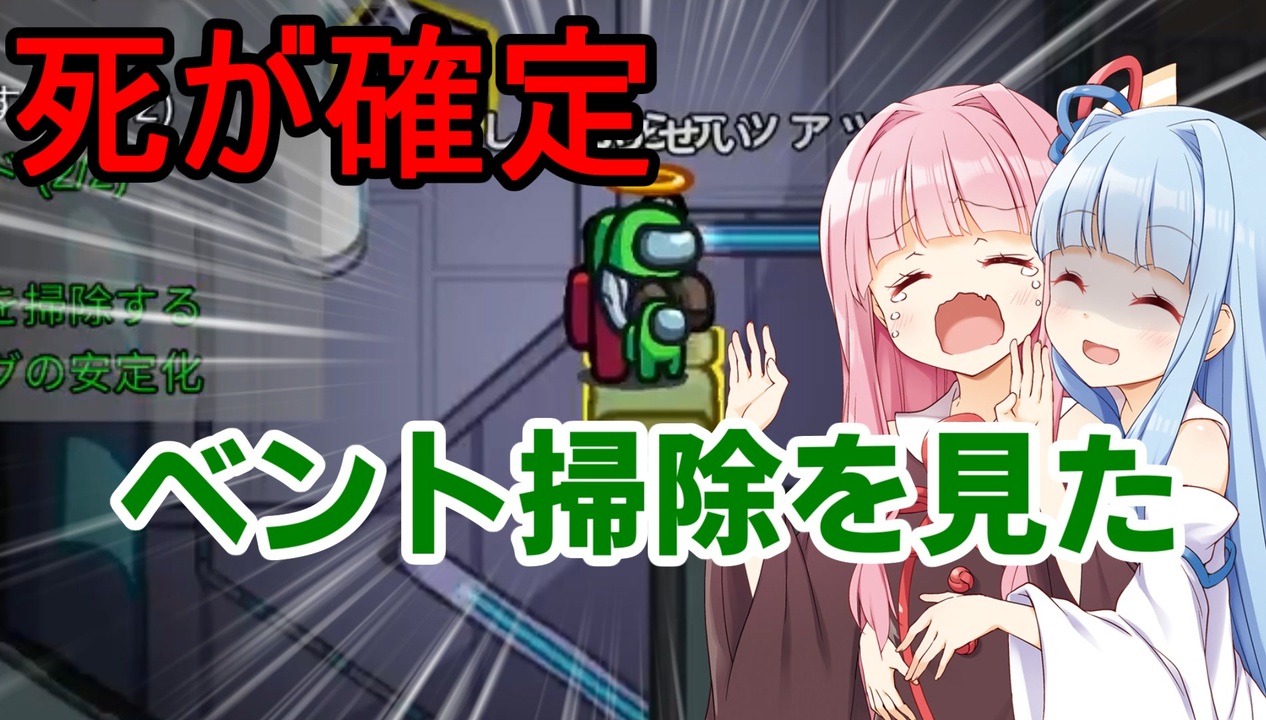 いいねを貰えるとモチベが上がります!<br>ベント掃除は遊びじゃないんだよ!!<br>毎週宇宙人狼してるので楽しいです<br><br>イラストは猫柳様のを紹介させて頂きました、ありがとうございます!<br><a href="https://twitter.com/@str_nekoyanagi" target="_blank" rel="noopener nofollow">https://twitter.com/@str_nekoyanagi</a><br><br>参加してくれた人たち<br><br>赤色:投稿主<br>バナナ:ホホホーホ・ホーホホ<br>黄緑:ゆっくり妖精 <a href="https://www.nicovideo.jp/user/152917" target="_blank" rel="noopener nofollow">https://www.nicovideo.jp/user/152917</a><br>淡茶:konoki <a href="https://www.nicovideo.jp/user/4592774" target="_blank" rel="noopener nofollow">https://www.nicovideo.jp/user/4592774</a><br>灰色:イリー<br>茶色:カイラー<br>黒色:ロストロドリゲス<br>白色:ナカクシ<br><br><br>ボイロ立ち絵<br><a href="https://seiga.nicovideo.jp/seiga/im10706241" target="_blank" rel="noopener nofollow">https://seiga.nicovideo.jp/seiga/im10706241</a><br><a href="https://seiga.nicovideo.jp/seiga/im6622963" target="_blank" rel="noopener nofollow">https://seiga.nicovideo.jp/seiga/im6622963</a><br>Amongus立ち絵<br><a href="https://seiga.nicovideo.jp/seiga/im10737725" target="_blank" rel="noopener nofollow">https://seiga.nicovideo.jp/seiga/im10737725</a><br><br>バナナ色に使ったvoice<br><a href="https://coefont.studio" target="_blank" rel="noopener nofollow">https://coefont.studio</a><br><br>BGM<br>PeriTune<br>OtoLogic<br>秋山裕和(Hirokazu Akiyama)<br><br><br /><span style="font-size: 14px;">ポケモン剣盾【</span><span style="color: #006699; font-size: 14px;"><a href="https://www.nicovideo.jp/mylist/66920305" target="_blank" rel="noopener">mylist/66920305</a></span><span style="font-size: 14px;">】</span><br>続PUBG【<span style="color: #006699; font-size: 14px;"><a href="https://www.nicovideo.jp/mylist/63981400" target="_blank" rel="noopener">mylist/63981400</a></span><span style="font-size: 14px;">】</span><br>PUBG【<span style="color: #006699; font-size: 14px;"><a href="https://www.nicovideo.jp/mylist/60021236" target="_blank" rel="noopener">mylist/60021236</a></span><span style="font-size: 14px;">】</span><br>DbD【<span style="color: #006699; font-size: 14px;"><a href="https://www.nicovideo.jp/mylist/65597947" target="_blank" rel="noopener">mylist/65597947</a></span><span style="font-size: 14px;">】</span><br><span style="font-size: 13px;">単発</span><span style="font-size: 14px;">【</span><span style="color: #006699; font-size: 14px;"><a href="https://www.nicovideo.jp/mylist/63379419" target="_blank" rel="noopener">mylist/63379419</a></span><span style="font-size: 14px;">】</span><br>ツイッター<span style="color: #006699; font-size: 14px;"><a href="https://twitter.com/Etenpura" target="_blank" rel="noopener nofollow">https://twitter.com/Etenpura</a></span>