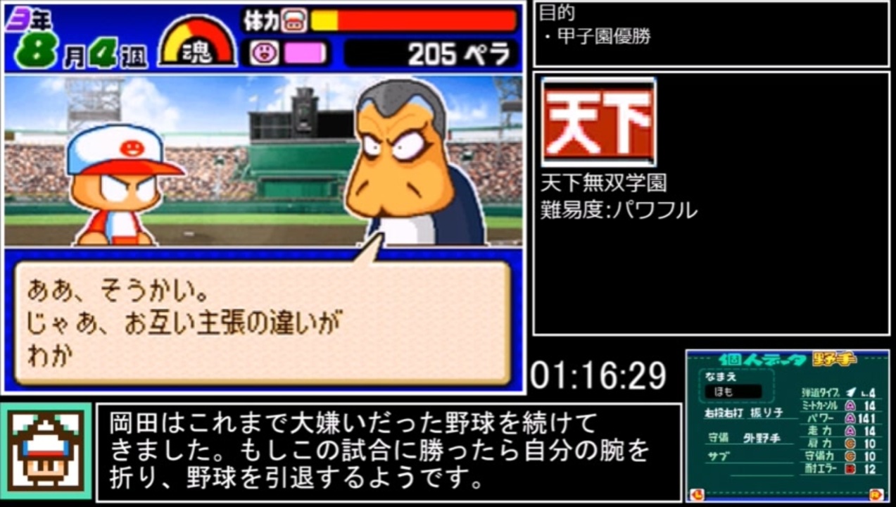 メソメソ泣いていてくるような初投稿なんて、私はお断りです。<br><br>計測開始:甲子園一直線編選択時<br>計測終了:選手登録時<br><br>前→<a href="https://www.nicovideo.jp/watch/sm39112559" class="watch">sm39112559</a><br><br>パワポケ10RTA:<a href="https://www.nicovideo.jp/mylist/71431412" target="_blank" rel="noopener">mylist/71431412</a><br>RTApat1まとめ:<a href="https://www.nicovideo.jp/mylist/56827667" target="_blank" rel="noopener">mylist/56827667</a><br>ツイッター(更新報告等):@yamabukiginu<br><br>ほぼ無修正版<br><a href="https://www.youtube.com/watch?v=YU519V2GJX4" target="_blank" rel="noopener nofollow">https://www.youtube.com/watch?v=YU519V2GJX4</a><br><br>立ち絵に関しては下記サイトからお借りしました。<br><a href="http://kpbpawa.web.fc2.com/" target="_blank" rel="noopener nofollow">http://kpbpawa.web.fc2.com/</a>