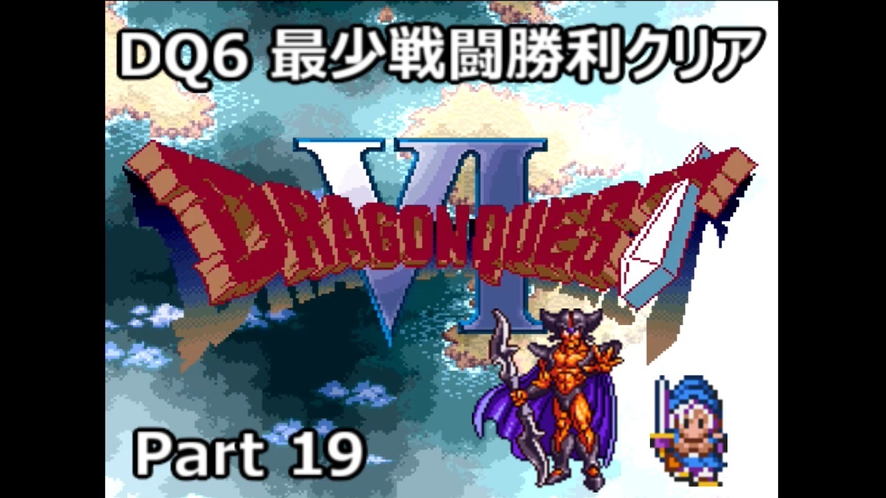 8101919は初投稿です。<br><br>今更気が付いたんですが、全戦闘回数の数を数え間違えてました。<br>39じゃなくて38戦でした。足し算できないとは...<br>すみません許してください!<br><br>Part19、テリー、デュラン戦です。<br><br>ドラゴンクエスト6の縛りプレイです。<br>縛り内容は以下の通り。<br><br>プレイ条件<br>1. 最少戦闘勝利回数クリア(全38戦)<br>2. 必須戦闘での稼ぎなし(仲間呼びでの経験値稼ぎ)<br>3. ダーマ神殿の利用不可<br>4. 編集は頑張らない<br>(バグによる戦闘回避なし)<br>(道中戦闘はひたすら逃げてます)<br><br><a href="https://www.nicovideo.jp/watch/sm39136770" class="watch">sm39136770</a>←Part18|Part20→<a href="https://www.nicovideo.jp/watch/sm39206820" class="watch">sm39206820</a><br>Part1→<a href="https://www.nicovideo.jp/watch/sm38699804" class="watch">sm38699804</a><br><br>youtube→<a href="https://www.youtube.com/channel/UCXkpWUmmGrMigseRKwhvroA" target="_blank" rel="noopener nofollow">https://www.youtube.com/channel/UCXkpWUmmGrMigseRKwhvroA</a><br>twitter→<a href="https://twitter.com/Hakusai_kkmsn" target="_blank" rel="noopener nofollow">https://twitter.com/Hakusai_kkmsn</a><br><br>この動画で利用している株式会社スクウェア・エニックスを代表とする共同著作者が権利を所有する著作物及びスギヤマ工房有限会社が権利を所有する楽曲の転載・配布は禁止いたします。<br>© 1995 ARMOR PROJECT/BIRD STUDIO/HEART BEAT/SQUARE ENIX All Rights Reserved.<br>© SUGIYAMA KOBO