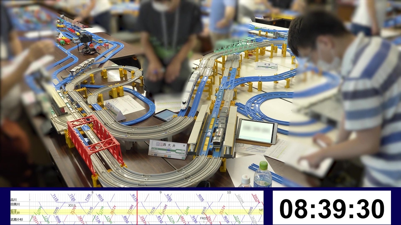 プラレールサークル「天通団」が主催する「相鉄直通 &湘南新宿運転会」に参加しました。あらかじめ設定されたダイヤと運用に従って、プラレールの車両をダイヤ通りに走らせていきます。右下の時刻の通り、現実の2秒をプラレール世界の1分とし30倍速で表現します。<br>動画は平日ダイヤの武蔵小杉・西大井・蛇窪界隈です。横須賀線、湘南新宿ライン、相鉄直通線、ライナー、NEX、貨物などが走っていきます。<br><br>主催:プラレールサークル「天通団」<br><a href="https://twitter.com/tentsudan" target="_blank" rel="noopener nofollow">https://twitter.com/tentsudan</a><br><br>★他参加者の動画★<br>・前面展望(相鉄直通)<br><a href="https://youtu.be/c-JvTgVOY-E" target="_blank" rel="noopener nofollow">https://youtu.be/c-JvTgVOY-E</a><br>・二俣川駅の映像<br><a href="https://www.nicovideo.jp/watch/sm39192462" target="_blank" rel="noopener nofollow">https://www.nicovideo.jp/watch/sm39192462</a><br>