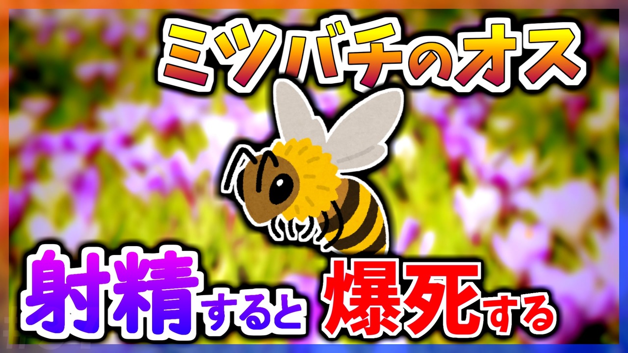 <span style="color: #e26775; font-size: 16px;"><strong>「いいね!」に追加の豆知識書いてます。</strong></span><br><br>今日の豆知識は「ミツバチのオスは射精すると爆死する」です。<br><br><br>今日の豆知識シリーズでは、様々なジャンルの豆知識を紹介していきます。<br>このシリーズは音声のみで、ラジオ感覚で聞くこともできます。<br><br>コメントやいいね、マイリストなどしていただけるとモチベにつながるのでよければお願いします。<br><br>◁ 前【<a href="https://www.nicovideo.jp/watch/sm39117204" class="watch">sm39117204</a>】<br>▷ 次【<a href="https://www.nicovideo.jp/watch/sm39163204" class="watch">sm39163204</a>】<br /><br><span style="font-size: 16px;"><strong>各シリーズPart1リンク</strong></span><br>【海外の気になるQ&A】<br><a href="https://www.nicovideo.jp/watch/sm42996236" class="watch">sm42996236</a><br>【今日の豆知識】<br><a href="https://www.nicovideo.jp/watch/sm38740531" class="watch">sm38740531</a><br>【テクノロジーの歴史】<br><a href="https://www.nicovideo.jp/watch/sm37218295" class="watch">sm37218295</a><br><br>▶ Youtube<br><a href="https://www.youtube.com/channel/UCgb_Wn-ZUdVM3MTLiVHhcXQ?sub_confirmation=1" target="_blank" rel="noopener nofollow">https://www.youtube.com/channel/UCgb_Wn-ZUdVM3MTLiVHhcXQ?sub_confirmation=1</a><br>▶ Twitter<br><a href="https://twitter.com/RayKemo" target="_blank" rel="noopener nofollow">https://twitter.com/RayKemo</a>