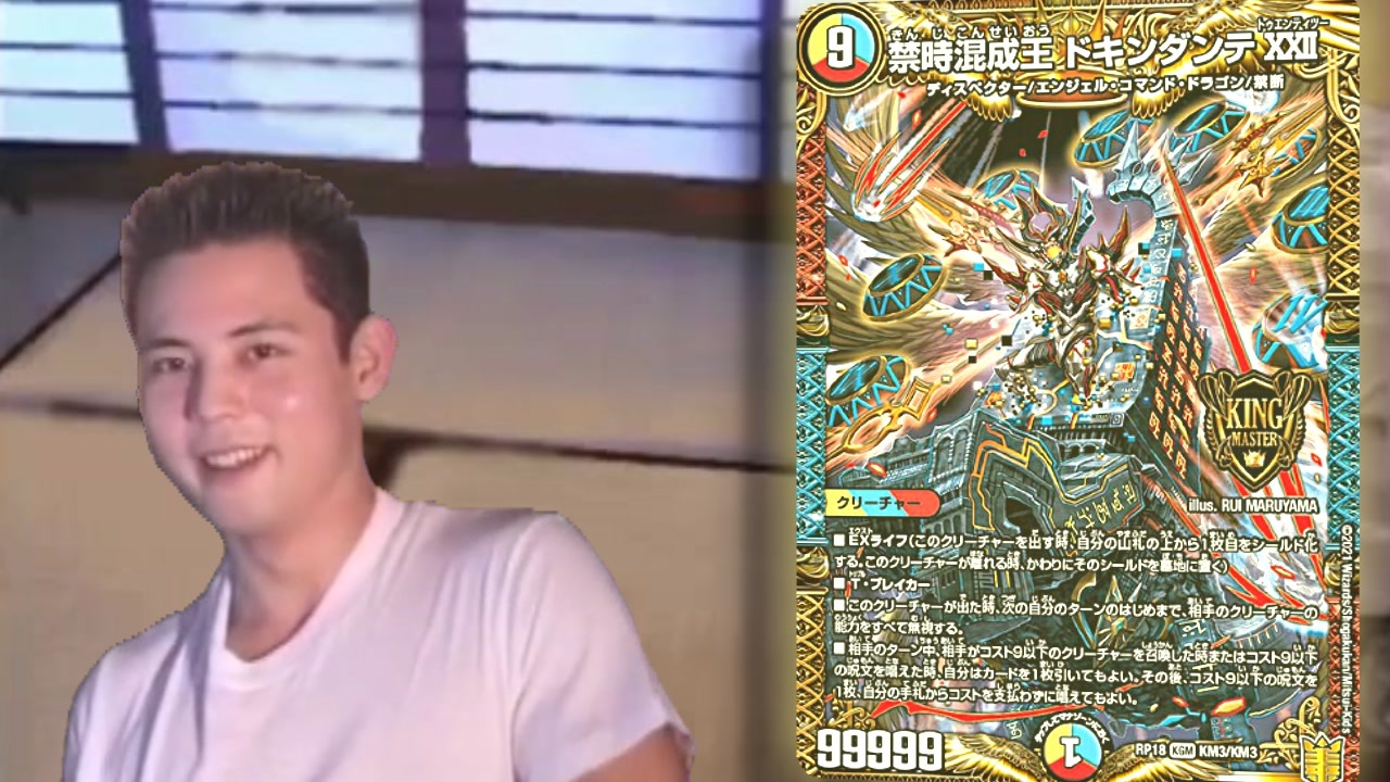 <span style="font-size: 16px;">「“幻想”じゃねえよな…!?」<br>「還って来る… オレ達の“E3”が還って来る!!」<br>「すぐ“帰国”する…ッ!!」</span><br><span style="color: #f3f3f3;">初投稿です。</span><br>【<a href="https://www.nicovideo.jp/watch/sm38910525" class="watch">sm38910525</a>】←前:次→【なんか出来たら】<br>--分割して見る場合--<br>① <a href="#" class="seekTime" data-seekTime="00:10" onclick="seekNicoPlayer('#00:10'); return false;">#00:10</a>~ ② <a href="#" class="seekTime" data-seekTime="07:05" onclick="seekNicoPlayer('#07:05'); return false;">#07:05</a>~ ③ <a href="#" class="seekTime" data-seekTime="14:14" onclick="seekNicoPlayer('#14:14'); return false;">#14:14</a>~ ④ <a href="#" class="seekTime" data-seekTime="20:42" onclick="seekNicoPlayer('#20:42'); return false;">#20:42</a>~<br>⑤ <a href="#" class="seekTime" data-seekTime="29:50" onclick="seekNicoPlayer('#29:50'); return false;">#29:50</a>~ ⑥ <a href="#" class="seekTime" data-seekTime="36:14" onclick="seekNicoPlayer('#36:14'); return false;">#36:14</a>~ ⑦ <a href="#" class="seekTime" data-seekTime="45:27" onclick="seekNicoPlayer('#45:27'); return false;">#45:27</a>~<br><br><span style="color: #0000ff;"><strong>高画質版</strong></span>:<a href="https://youtube.com/playlist?list=PLuhdOuXT-VrtAfCK0ZjuuWYOnLtiicSH1" target="_blank" rel="noopener nofollow">https://youtube.com/playlist?list=PLuhdOuXT-VrtAfCK0ZjuuWYOnLtiicSH1</a><br><br><span style="color: #3d85c6; font-size: 10px;">追記 </span><br><span style="font-size: 10px;">・<a href="#" class="seekTime" data-seekTime="41:36" onclick="seekNicoPlayer('#41:36'); return false;">#41:36</a>はルールミスです。気合で脳内補完してください(<a href="https://dm.takaratomy.co.jp/rule/qa/39973/)" target="_blank" rel="noopener nofollow">https://dm.takaratomy.co.jp/rule/qa/39973/)</a><br>・<a href="#" class="seekTime" data-seekTime="58:53" onclick="seekNicoPlayer('#58:53'); return false;">#58:53</a>で場にいないクリーチャーの効果が発動していますが再召喚し召喚時効果を使ったものとして補完してくさだい<br>・<a href="#" class="seekTime" data-seekTime="42:07" onclick="seekNicoPlayer('#42:07'); return false;">#42:07</a>における裁定は投稿時点のものを使用しています。現在は新裁定(<a href="https://dm.takaratomy.co.jp/rule/rulechange/31642/" target="_blank" rel="noopener nofollow">https://dm.takaratomy.co.jp/rule/rulechange/31642/</a> )の処理になります</span><br><br>マドール兄貴、クリムゾンワイバーン兄貴、PULL兄貴、ざんくま兄貴、グシオンゴリラ兄貴、あああ兄貴、ボルガッシュ兄貴、Nyiar兄貴、鳥人木村兄貴、カマキリモドキ兄貴<br>広告謝謝茄子男!