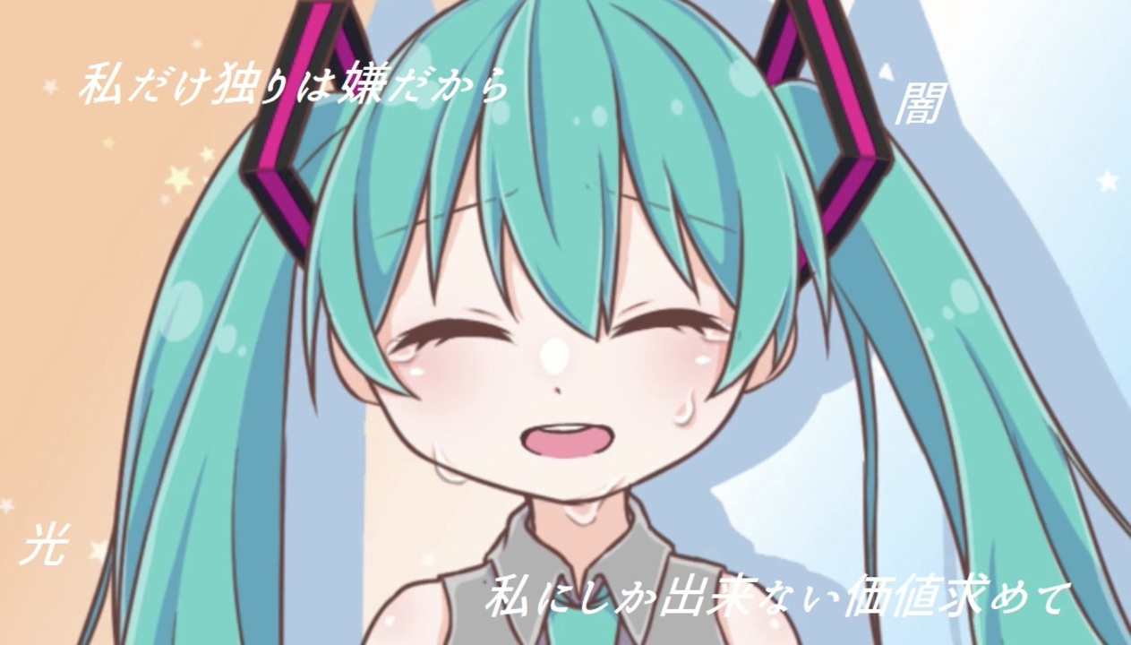 『私だけ独りは嫌だから』<br><br>6作目『±0』<br>※真島ゆろさん主催 曲名統一祭2021参加作品<br><br>vocal:初音ミク<br>music:榊みむ<br><a href="https://mobile.twitter.com/Kashiwa_mimu" target="_blank" rel="noopener nofollow">https://mobile.twitter.com/Kashiwa_mimu</a><br>illustration&movie:霧也。<br><a href="https://mobile.twitter.com/kiriya_ff" target="_blank" rel="noopener nofollow">https://mobile.twitter.com/kiriya_ff</a><br><br>inst:<a href="https://piapro.jp/t/4yF4" target="_blank" rel="noopener nofollow">https://piapro.jp/t/4yF4</a><br><br>【歌詞】<br><br>もしもあなたには感情がないの<br>なんて言われたらどうするの<br>私から見たら何にもなれない<br>何をやるにも中途半端<br><br>そんなこと急に言われたとしても<br>変われるところなんて無いけれど<br>少しでも君と交われるのなら<br>せめて歌だけは譲りたくない<br><br>私にしか出来ない価値求めて<br>気の済むまでまだ時間も止めて<br>陽の光に照らされていたいの<br>私だけ独りは嫌だから<br><br>不満すら笑みさえ表せない<br>今の私でも変われるように<br>さあそのまま闇を駆け抜けてよ<br>私だけ独りは嫌だから<br><br><br><br><br>