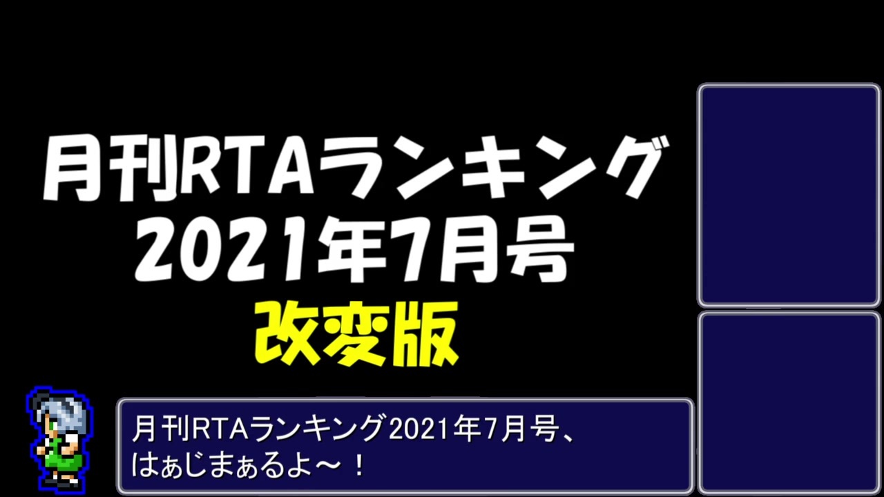 ランキングについての詳細(<a href="https://ch.nicovideo.jp/article/ar1944234" target="_blank" rel="noopener">ar1944234</a>)<br><br>先月と同様に同作品が多く並びましたので、ランキングがふたつあります。<br>詳しくは先月の動画をご確認ください。<br><br><span style="color: #ff0000;">※切り抜き動画の音声がエコーしております。<br>おそらく先日動画編集環境を変えたためです。<br>申し訳ありませんが、対応が難しいので、<br>次号から修正とさせて頂きます。</span><br><br>7月号通常版(<a href="https://www.nicovideo.jp/watch/sm39187852" class="watch">sm39187852</a>) | 7月号変更版(こ↑こ↓) |8月号(まぁ~だ時間かかりそうですかね~)<br><br> 1位~100位(<a href="https://www.nicovideo.jp/mylist/69251413" target="_blank" rel="noopener">mylist/69251413</a>)<br><br>この動画で利用している株式会社スクウェア・エニックスを代表とする共同著作者が権利を所有する著作物及びスギヤマ工房有限会社が権利を所有する楽曲の転載・配布は禁止いたします。<br>© 1996 ARMOR PROJECT/BIRD STUDIO/HEART BEAT/SQUARE ENIX All Rights Reserved.<br>© SUGIYAMA KOBO