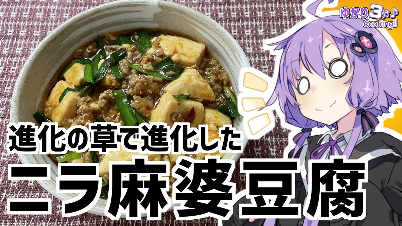 結月ゆかりを使用した料理動画です<br><br>ニラが余ってたのでニラを入れて麻婆豆腐作ってみました!<br>味が凄く変わってびっくらぽん!(死語<br><br>※1:30辺りの調味料で豆板醤が二回出てますが豆鼓醤:大さじ2/3の間違いです申し訳ない!<br><br>ニラが余っている理由については『いいね!』を押して確認してくれよな!<br><br>今回使用した材料<br>合挽肉:150g 豆腐:1丁<br>ニラ:半束 豆板醤:大さじ1<br>甜面醤:大さじ1 豆鼓醤:大さじ1/2<br>ニンニク:大さじ1 ラー油:大さじ1<br>お酒:大さじ1 塩コショウ:少々<br>ごま油:少々 片栗粉:適量<br><br>ゆかりさんがいなかったエビチリ:<a href="https://www.nicovideo.jp/watch/sm39174662" class="watch">sm39174662</a><br>蹴上の絶景お花見スポット!JK旅:<a href="https://www.nicovideo.jp/watch/sm38890137" class="watch">sm38890137</a><br><br>オススメのボイロ劇場<br>茜ちゃんと葵ちゃんの現代怪異占い:<a href="https://www.nicovideo.jp/watch/sm38263500" class="watch">sm38263500</a><br><br>ツイッター:<a href="https://twitter.com/mrt89244817" target="_blank" rel="noopener nofollow">https://twitter.com/mrt89244817</a>