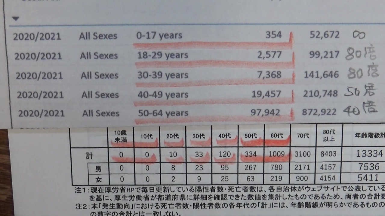 JPSikaDoctor より転載<br>元動画: <a href="https://youtu.be/2oDMbnzlx04" target="_blank" rel="noopener nofollow">https://youtu.be/2oDMbnzlx04</a><br><br>厚労省、CDCが発表するデータを比べたものです。<br>下記厚労省URLから重傷者数も見てみてください。<br><br>同じ厚労省が発表する数字なのに、メディアが報道する重傷者数と大きく差がある事に気づくと思います。<br>実際に国内発生動向の重傷者数注釈を見るとわかるのですが、次のように書いてあります。<br><br>"注1:現在厚労省HPで毎日更新している重症者数は、各自治体がウェブサイトで公表している数値を積み上げたものである。<br>これに対し、本「発生動向」における 重症者数は、この数値を基に、厚生労働省が都道府県に詳細を確認できた数値を集計したものであるため、両者の合計数は一致しない。 "<br><br>彼らが報道する数字は厚労省が公表している「報道発表資料」から抜粋したものですが、<br>その資料に書いてある数字は各自治体の数字を集計したものです。<br>つまり、厚労省が確認を取っていないただの「自己申告」という事になります。<br><br>本来であれば報道する側も確定したこの値を使って訂正なりすべきだと思います。<br>重傷者数に約1000人ほど誤差があります。<br><br><br>また、死者も現在1万4000人ほどが亡くなったとされていますが、<br>厳密に言えばPCR陽性判定後に死亡した方、です。<br>*米でも同じ扱いです: <a href="https://youtu.be/cMEYDSrar-U" target="_blank" rel="noopener nofollow">https://youtu.be/cMEYDSrar-U</a><br><br>原死因に関しては人口動態調査で把握すると厚労省は方針を出しているため、<br>報道では「感染して死亡した」と「死因」を明確に言わないやり方になっているのだと思います。<br>ところがそんな説明は一切ありません。<br><br>その結果、視聴者は言葉通り「感染して死亡した。特に死因も明言してない。コロナか」、と<br>都合良く勝手に勘違いしてくれる構図になっています。<br>厚労省がPCR陽性 = 感染と定義しているのも原因です。<br><br><br>死者数に関して本動画の視聴後にこれをご覧ください。<br>・【改定更新版】日本での新型コロナ死亡者数の実態<br>犬房春彦(ルイ・パストゥール医学研究センター/医師・医学博士)<br><a href="https://youtu.be/YmWdQ4PIJ7I" target="_blank" rel="noopener nofollow">https://youtu.be/YmWdQ4PIJ7I</a><br><br>・CDC<br><a href="https://www.cdc.gov/nchs/nvss/vsrr/covid_weekly/index.htm#SexAndAge" target="_blank" rel="noopener nofollow">https://www.cdc.gov/nchs/nvss/vsrr/covid_weekly/index.htm#SexAndAge</a><br><br>・厚労省<br><a href="https://www.mhlw.go.jp/content/10906000/000818427.pdf" target="_blank" rel="noopener nofollow">https://www.mhlw.go.jp/content/10906000/000818427.pdf</a><br><br><br />◆副反応相談窓口<br><a href="https://567kyusai.com/" target="_blank" rel="noopener nofollow">https://567kyusai.com/</a><br>上記サイトは弁護士団、中村篤史医師、高橋徳医師、日野市議会議員 池田としえが運営しています。<br>副反応に苦しむ方や家族を亡くされた方の窓口です。<br><br>◆情報発信者<br>・ワクチン特例承認取消 原告 中村篤史医師<br><a href="https://note.com/nakamuraclinic" target="_blank" rel="noopener nofollow">https://note.com/nakamuraclinic</a><br><br>・徳島大学名誉教授 大橋眞 ニコニコ<br><a href="https://www.nicovideo.jp/user/28051368" target="_blank" rel="noopener nofollow">https://www.nicovideo.jp/user/28051368</a><br><br>・mRNAワクチン開発者 Robert W Malone ツイッター<br><a href="https://twitter.com/RWMaloneMD" target="_blank" rel="noopener nofollow">https://twitter.com/RWMaloneMD</a><br><br><br>◆副反応報告<br>・各国比較データ (ブースター接種数、死亡者数も確認できます)<br><a href="https://ux.nu/DoQRY" target="_blank" rel="noopener nofollow">https://ux.nu/DoQRY</a><br><br>・日本<br><a href="https://ux.nu/LBLah" target="_blank" rel="noopener nofollow">https://ux.nu/LBLah</a><br><br>・アメリカ<br><a href="https://ux.nu/a8uSi" target="_blank" rel="noopener nofollow">https://ux.nu/a8uSi</a><br><br>・イギリス<br><a href="https://ux.nu/KeSl4" target="_blank" rel="noopener nofollow">https://ux.nu/KeSl4</a><br>3週間で3万人死亡: <a href="https://ux.nu/19XR9" target="_blank" rel="noopener nofollow">https://ux.nu/19XR9</a><br><br>◆コロナ陽性者取り扱い<br>・厚生労働省<br><a href="https://ux.nu/VxZpU" target="_blank" rel="noopener nofollow">https://ux.nu/VxZpU</a><br><br>・米イリノイ州<br><a href="https://www.nicovideo.jp/watch/sm39250309" class="watch">sm39250309</a><br><br>・WHO通知<br><a href="https://ux.nu/fiAXm" target="_blank" rel="noopener nofollow">https://ux.nu/fiAXm</a><br><br>◆ADE研究<br>・大阪大学<br><a href="https://ux.nu/0KfKN" target="_blank" rel="noopener nofollow">https://ux.nu/0KfKN</a><br><a href="https://ux.nu/PuhHY" target="_blank" rel="noopener nofollow">https://ux.nu/PuhHY</a><br><br>・マルセイユ大学<br><a href="https://ux.nu/rtwJ7" target="_blank" rel="noopener nofollow">https://ux.nu/rtwJ7</a><br><br>・自然免疫 vs ワクチン<br><a href="https://ux.nu/T2u4X" target="_blank" rel="noopener nofollow">https://ux.nu/T2u4X</a><br><br>◆報道されていますか<br>CDC 早期の接種は重症化リスク高い: <a href="https://ux.nu/Jog1P" target="_blank" rel="noopener nofollow">https://ux.nu/Jog1P</a><br>イスラエル 重傷者の95%は接種済み: <a href="https://ux.nu/sr0u5" target="_blank" rel="noopener nofollo