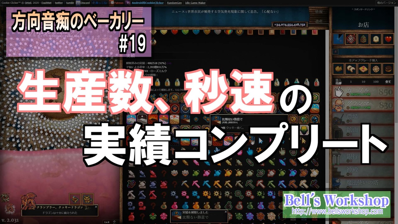 生産数、秒速の実績コンプリート。いよいよ残り未実績も少なくなってきました。<br><br>前:<a href="https://www.nicovideo.jp/watch/sm39103553" class="watch">sm39103553</a> 次:<a href="https://www.nicovideo.jp/watch/sm39299239" class="watch">sm39299239</a> マイリスト:<a href="https://www.nicovideo.jp/mylist/70729379" target="_blank" rel="noopener">mylist/70729379</a><br>※Part19裏話:<a href="http://bellsworkshop.com/cookie-part19/" target="_blank" rel="noopener nofollow">http://bellsworkshop.com/cookie-part19/</a><br><br>ブログ<br><a href="http://www.bellsworkshop.com/" target="_blank" rel="noopener nofollow">http://www.bellsworkshop.com/</a><br><br>Youtubeチャンネル<br><a href="http://www.youtube.com/user/bellsworkshop2" target="_blank" rel="noopener nofollow">http://www.youtube.com/user/bellsworkshop2</a><br><br>Music:purple planet royalty free music <a href="http://www.purple-planet.com/" target="_blank" rel="noopener nofollow">http://www.purple-planet.com/</a><br>Sound:On-Jin ~音人~ <a href="http://on-jin.com/" target="_blank" rel="noopener nofollow">http://on-jin.com/</a><br>