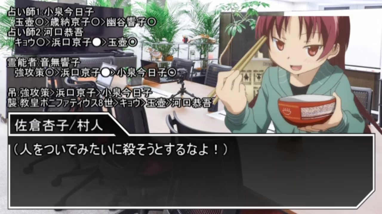 お待たせして本当申し訳ございませんでした!(2か月半ぶり3回目)<br><span style="color: #ff0000;">本編は1:58~です<br>茶番パートが不要な方は飛ばしてください</span><br><br>【追記】2021年8月26日(水)<br>早送りになっている部分について、コメントをいただきましたので別動画にて投稿いたしました。<br><a href="https://www.nicovideo.jp/watch/sm39239118" class="watch">sm39239118</a> よりご覧いただけます。<br><br>過去の発言がバレて五輪のテーマ曲作成担当を外されて体調を崩し、最近38°の発熱をしたりしましたが、金メダルをかじって栄養補給したら治りました。<br><br>(前回に比べるとちょっと短めです……。どうか温かい目でお見守りくださいませ……)<br><br>【追記及びお詫び】2021年8月23日(月)<br>申し訳ございませんでした。<br>オリンピック開催の是非につきまして、私自身の思想が特にあるわけではございませんでした。<br>「経済効果〜」の件は動画投稿が遅れた自虐として、私が浅慮であるが故に用いたものです。<br>政治批判とも取れるような表現を致しましたこと、深くお詫び申し上げます。<br><br>前回:<a href="https://www.nicovideo.jp/watch/sm38829823" class="watch">sm38829823</a><br>次回:<a href="https://www.nicovideo.jp/watch/sm39576931" class="watch">sm39576931</a><br><br>◆ややこしい人狼シリーズ<br><a href="https://www.nicovideo.jp/mylist/70623486" target="_blank" rel="noopener">mylist/70623486</a><br><br>■過去のシリーズ<br>◆詰め合わせ人狼(完結済)<br><a href="https://www.nicovideo.jp/mylist/68669592" target="_blank" rel="noopener">mylist/68669592</a><br>◆名前吊り人狼シリーズ(完結済)<br><a href="https://www.nicovideo.jp/mylist/70399468" target="_blank" rel="noopener">mylist/70399468</a><br><br>Twitterを始めました!<br><a href="https://twitter.com/puuuuma_desu" target="_blank" rel="noopener nofollow">https://twitter.com/puuuuma_desu</a><br><br>■ニコニ広告のお礼が長くなってしまうため、投稿者コメントからは割愛させていただきます…… ですがちゃんと見ております!皆様ありがとうございます!<br><br>