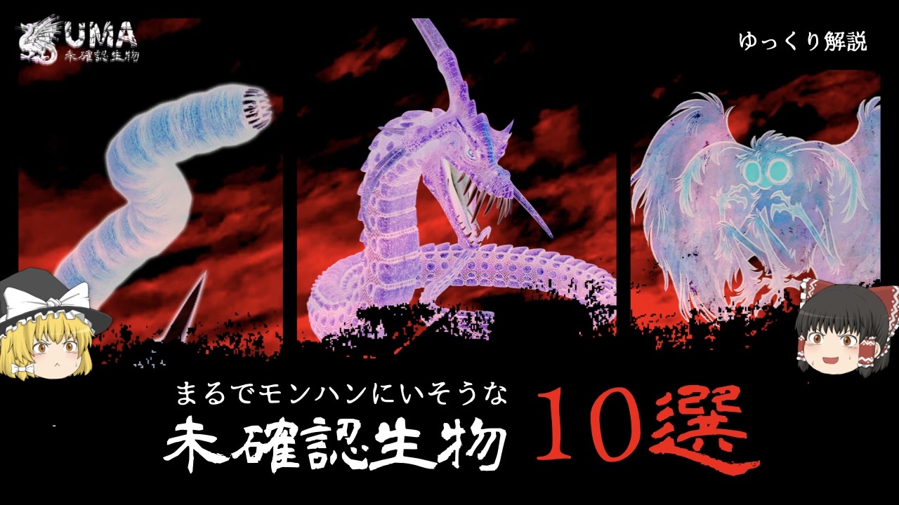 お疲れ様です、いつもありがとうございます。<br>今回はみんな大好きなUMAを紹介しますよ。<br><br>皆さんの見解も知りたいです、コメントよろしくおねがいします!<br><br>【広告ありがとうございます!】<br><span style="color: #6aa84f;"><strong>キャロ太 さん 狼禅 さん アサヒナ さん あかね さん カミツレ さん kouichi@組長 さん <br>満鉄ミカイ さん キャッチ22 さん しめさば さん kodomotoko さん</strong></span><br><br>いいねとチャンネル登録をどうか何卒、何卒よろしくお願いいたします!<br><br><a href="http://www.youtube.com/channel/UCqLHMs76QGLpcaoFCcxKG-g?sub_confirmation=1" target="_blank" rel="noopener nofollow">http://www.youtube.com/channel/UCqLHMs76QGLpcaoFCcxKG-g?sub_confirmation=1</a><br><br>全部知っていたらうまい棒なっとう味を差し上げます<br><br>【目次】<br>1. タッツェルヴルム<br>2. サンダーバード<br>3. 食人木<br>4. ジャッカロープ<br>5. ラーガルフリョゥトルムリン<br>6. 翼猫<br>7. モスマン<br>8. 南極ゴジラ<br>9. ムカデクジラ<br>10. モンゴリアン・デス・ワーム<br><br>【投稿動画はこちら】<br><a href="https://www.nicovideo.jp/mylist/71081372" target="_blank" rel="noopener">mylist/71081372</a><br><br>【Twitterはこちらから!】<br><a href="https://twitter.com/sensei0504" target="_blank" rel="noopener nofollow">https://twitter.com/sensei0504</a><br><br>【テロップ】<br>びたちー素材館<br><a href="http://www.vita-chi.net/sozai1.htm" target="_blank" rel="noopener nofollow">http://www.vita-chi.net/sozai1.htm</a><br><br>【背景】<br><a href="https://k-after.at.webry.info/" target="_blank" rel="noopener nofollow">https://k-after.at.webry.info/</a><br><a href="https://winddorf.net" target="_blank" rel="noopener nofollow">https://winddorf.net</a>