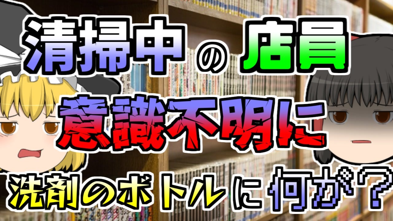 #ゆっくり解説 #ゆっくりするところ #有機溶剤<br>今回は『漫画喫茶溶剤中毒』の紹介です。<br>この漫画喫茶では、深夜の営業をアルバイト店員が担当していました。<br>そのうちの一人、Aさんはこの日風邪をひいていましたが、無理をしてトイレの清掃をしていました。<br>清掃には、二つのボトルに入った洗剤を使用して行われました。<br>しかし、掃除をしているうちに、段々とAさんは頭痛を感じ、最終的には意識を失って、倒れこんでしまいました。<br>Aさんが使用していた、洗剤ボトルの片方は、中身がシンナーに入れ替えられたものだったのです。<br>これは前日に店長が独断で入れ替えたものであり、店長以外はこの事を誰も知りませんでした・・・<br><br>有機溶剤は、意外と私たちの身近に存在しているものです。<br>使用するときは、説明書や注意書きをよく読み、正しく利用しましょう。<br><br>引用:出典:参考<br>ペイント王<br>ishort.ink/Qc9E<br>MEDLEY<br>ishort.ink/B5Ab<br>ENEOS㈱<br>ishort.ink/2UNx<br>Wikipedia<br>ishort.ink/VNBR<br><br>BGM<br>フリーBGM『海底の神殿』 by MAKOOTO<br><a href="https://dova-s.jp/bgm/play7690.html" target="_blank" rel="noopener nofollow">https://dova-s.jp/bgm/play7690.html</a><br><br><br><br />※この動画は過去の事件を知り、現在でも同じことが発生する危険性を再認識、関与しないように促すための動画であり、視聴者を扇動、動揺を誘うためのコンテンツではありません。<br><br>ご要望にお応えして、メンバーシップの開設を行いました。<br>下記URLからも登録可能ですので、ご興味がある方は是非ご参加ください。<br><a href="https://www.youtube.com/channel/UCcT5a1J7XJW7CLYI2RKl4pw/join" target="_blank" rel="noopener nofollow">https://www.youtube.com/channel/UCcT5a1J7XJW7CLYI2RKl4pw/join</a><br><br><br>Twitter<br>→<a href="https://twitter.com/yukkurisurutoko" target="_blank" rel="noopener nofollow">https://twitter.com/yukkurisurutoko</a><br><br>取り急ぎ、簡易的にですがマイリストを作りました。<br>【ゆっくり解説】事故・事件関係紹介リスト <br><a href="https://www.nicovideo.jp/mylist/71034319" target="_blank" rel="noopener nofollow">https://www.nicovideo.jp/mylist/71034319</a><br>【ゆっくり解説】放射線系事故<br><a href="https://www.nicovideo.jp/mylist/71034368" target="_blank" rel="noopener nofollow">https://www.nicovideo.jp/mylist/71034368</a><br>【ゆっくり解説】鉄道系事故・事件関連<br><a href="https://www.nicovideo.jp/mylist/71034379" target="_blank" rel="noopener nofollow">https://www.nicovideo.jp/mylist/71034379</a>