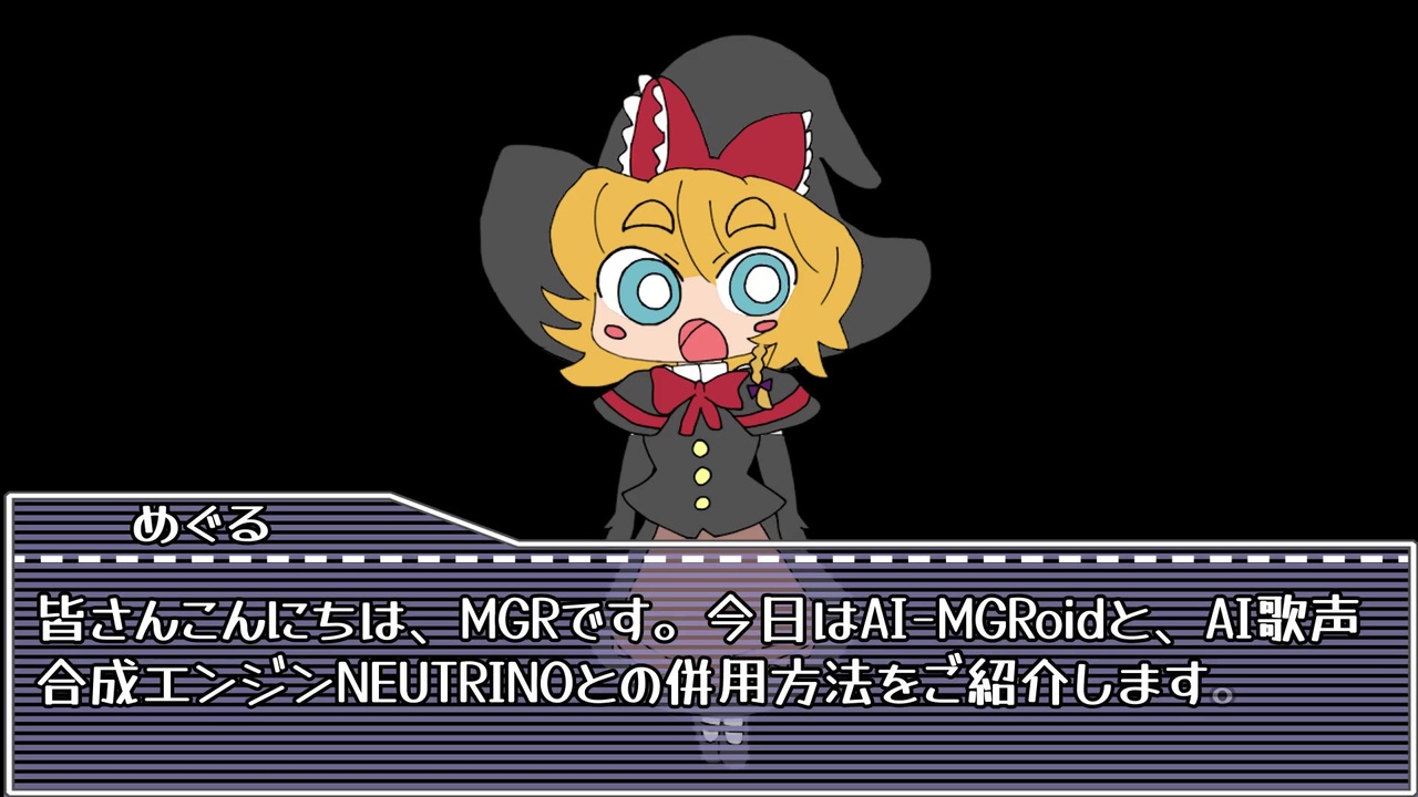 <strong>ソフトウェア配布先:</strong><a href="https://drive.google.com/file/d/1lW3uMVQFujBojoGC87VMbRSoyxg6j8Bm/view?usp=sharing" target="_blank" rel="noopener nofollow">https://drive.google.com/file/d/1lW3uMVQFujBojoGC87VMbRSoyxg6j8Bm/view?usp=sharing</a><br><br>使用交流Discordサーバー:<a href="https://discord.gg/Atw9XPdM" target="_blank" rel="noopener nofollow">https://discord.gg/Atw9XPdM</a><br><br>トレーニングデータ(リファレンスファイル):<a href="https://drive.google.com/drive/folders/1JtV6DofTaSCK2qwmjDD-7CDML9S7wWEz?usp=sharing" target="_blank" rel="noopener nofollow">https://drive.google.com/drive/folders/1JtV6DofTaSCK2qwmjDD-7CDML9S7wWEz?usp=sharing</a> (<a href="https://www.nicovideo.jp/watch/sm30859912" class="watch">sm30859912</a>/<a href="https://www.nicovideo.jp/watch/sm35650520" class="watch">sm35650520</a>から)<br><br>NEUTRINOのチュートリアル:<a href="https://www.nicovideo.jp/watch/sm37557508" class="watch">sm37557508</a><br><br>使用BGM:<a href="https://www.nicovideo.jp/watch/sm39105488" class="watch">sm39105488</a>/<a href="https://www.nicovideo.jp/watch/sm38194932" class="watch">sm38194932</a><br><br>現在サポートされているシンガー:<u>MGR/BNKRG</u>(今後も追加していきます)<br><br><span style="font-size: 12px;"><i><u>注:このモデルは歌唱専用です。語りは、機能が限られていてまだリリースされていない音声モデルを使って生成されました。現在も音声モデルを開発中です。</u></i></span>