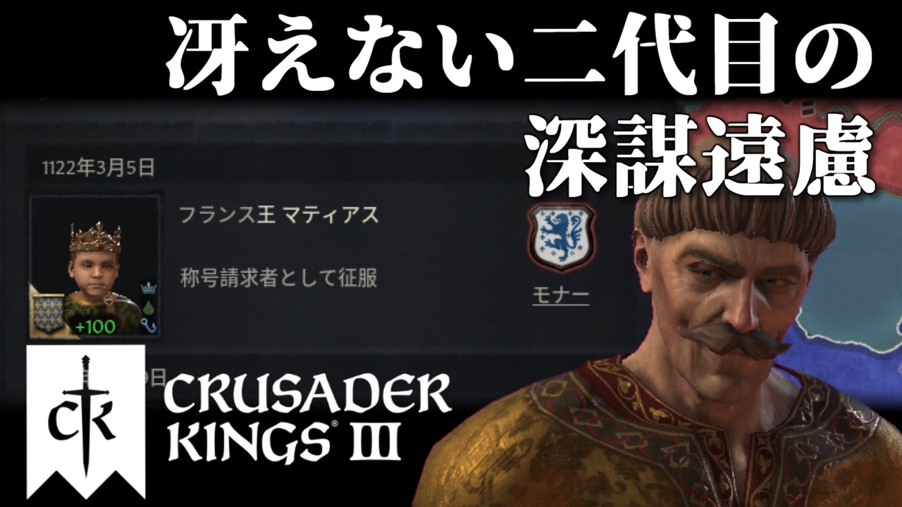 冴えない二代目の深謀遠慮の巻<br>Ver1.44<br><span style="color: #ff0000;">Youtubeチャンネル:<a href="https://www.youtube.com/channel/UCIgzloQ_KfcUN_AcvlxtDdg" target="_blank" rel="noopener nofollow">https://www.youtube.com/channel/UCIgzloQ_KfcUN_AcvlxtDdg</a></span><br><span style="color: #0000ff;">Twitter:<a href="https://twitter.com/proffesor2sk" target="_blank" rel="noopener nofollow">https://twitter.com/proffesor2sk</a></span><br>※その他のプレイ講座はこちら:<a href="https://www.nicovideo.jp/mylist/34307950" target="_blank" rel="noopener">mylist/34307950</a><br>[Crusader Kings 3] Copylight © [2020] Paradox Interactive AB. www.paradoxplaza.com<br><br>使わせていただいた素材サイト<br>フォント:「M+」「装甲明朝」「たぬき油性マジック」「しねきゃぷしょん」<br>効果音:「効果音ラボ」「効果音辞典」「OtoLogic」<br>BGM:<br>Sorrow & Cold Journey<br>by Alexander Nakarada | <a href="https://www.serpentsoundstudios.com" target="_blank" rel="noopener nofollow">https://www.serpentsoundstudios.com</a><br>Music promoted by <a href="https://www.free-stock-music.com" target="_blank" rel="noopener nofollow">https://www.free-stock-music.com</a><br>Attribution 4.0 International (CC BY 4.0)<br><a href="https://creativecommons.org/licenses/by/4.0/" target="_blank" rel="noopener nofollow">https://creativecommons.org/licenses/by/4.0/</a>
