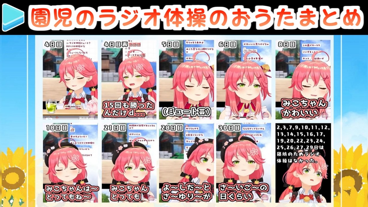 お遊戯会<br><br>Miko Ch. さくらみこ <a href="https://t.co/FM8eBkuiOO" target="_blank" rel="noopener nofollow">https://t.co/FM8eBkuiOO</a><br><br>#1 <a href="https://youtu.be/YZtRpGmNHRI" target="_blank" rel="noopener nofollow">https://youtu.be/YZtRpGmNHRI</a><br>#2(4,4再日目) <a href="https://youtu.be/HwSNTjVCFPE" target="_blank" rel="noopener nofollow">https://youtu.be/HwSNTjVCFPE</a><br>#3(5,6,8日目) <a href="https://youtu.be/L3xsvQv0oLw" target="_blank" rel="noopener nofollow">https://youtu.be/L3xsvQv0oLw</a><br>#4 <a href="https://youtu.be/jrsoTPxMQCw" target="_blank" rel="noopener nofollow">https://youtu.be/jrsoTPxMQCw</a><br>#5(18,21日目) <a href="https://youtu.be/9-mS4lUd_8M" target="_blank" rel="noopener nofollow">https://youtu.be/9-mS4lUd_8M</a><br>#6(28,30日目) <a href="https://youtu.be/7Qpp0xlZBrM" target="_blank" rel="noopener nofollow">https://youtu.be/7Qpp0xlZBrM</a><br /><span style="color: #b7b7b7; font-size: 10px;">ホロライブ切り抜き/なめたけ <a href="https://t.co/CBwJLnYR2c" target="_blank" rel="noopener nofollow">https://t.co/CBwJLnYR2c</a></span>