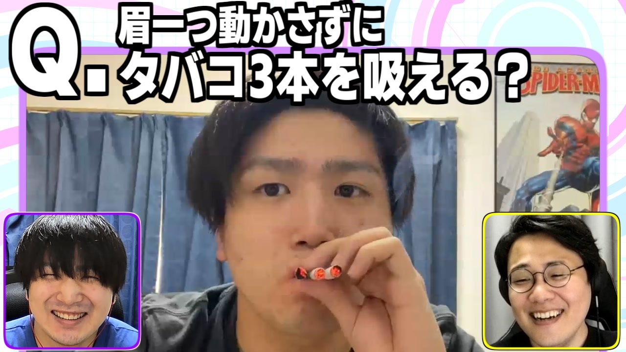 Q.眉一つ動かさずにタバコ3本を吸える? 14:35
