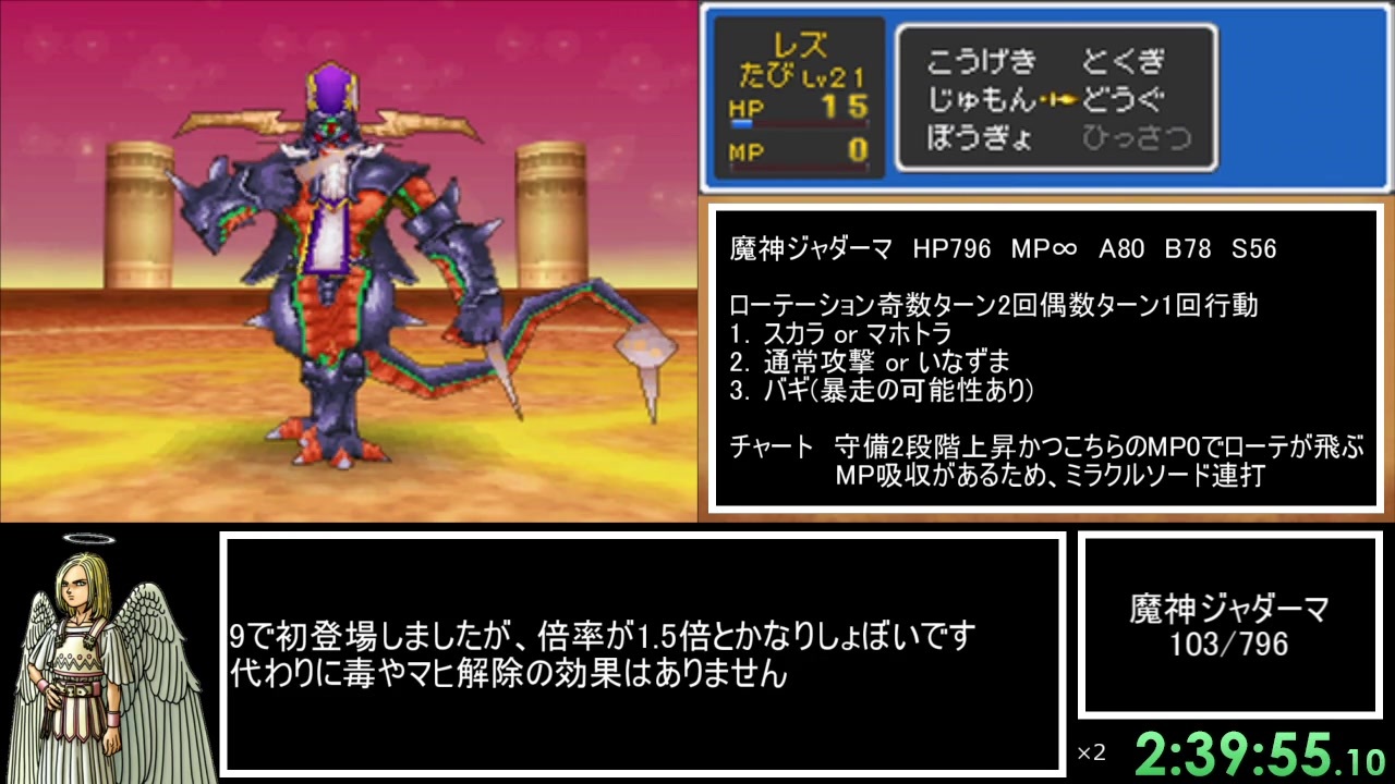 ドラクエ9の一人旅RTA<br>計測区間は電源投入からto be continued消失まで<br>ルイーダの酒場での仲間の加入及び外部通信は禁止<br><br>実はこの記録世界2位だったりするんだぞ、走者5人しかいないけど<br>最大ダメージ検証動画→<a href="https://youtu.be/7t-xCN4YQjg" target="_blank" rel="noopener nofollow">https://youtu.be/7t-xCN4YQjg</a><br><br>part1→<a href="https://www.nicovideo.jp/watch/sm39230922" class="watch">sm39230922</a><br>次→シリーズからよろしく、概要欄の一番下にあるよ<br>これのマイリス→<a href="https://www.nicovideo.jp/mylist/71653868" target="_blank" rel="noopener">mylist/71653868</a><br>無編集垂れ流し→<a href="https://youtu.be/4HSXpBJdLs4" target="_blank" rel="noopener nofollow">https://youtu.be/4HSXpBJdLs4</a><br>うp動画まとめ→<a href="https://www.nicovideo.jp/mylist/71230916" target="_blank" rel="noopener">mylist/71230916</a><br><br>ベクセリア~ツォの浜まで<br><br>※この動画の一部または全部を外部サイト等へ転載することを禁じます。<br> 動画紹介等で動画の一部を引用するのは構いません。<br><br>この動画で利用している株式会社スクウェア・エニックスを代表とする共同著作者が権利を所有する著作物及びスギヤマ工房有限会社が権利を所有する楽曲の転載・配布は禁止いたします。<br>© 2009 ARMOR PROJECT/BIRD STUDIO/LEVEL-5/SQUARE ENIX All Rights Reserved.<br>© SUGIYAMA KOBO<br>Ⓟ SUGIYAMA KOBO