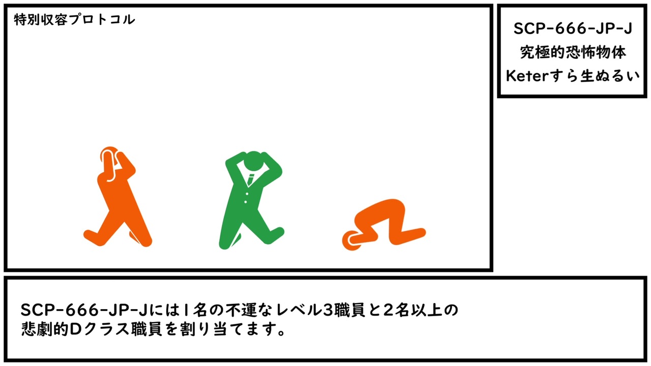 <span style="color: #009900;">[END OF LIFE]</span><br><br>本家記事 <a href="http://scp-jp.wikidot.com/scp-666-jp-j" target="_blank" rel="noopener nofollow">http://scp-jp.wikidot.com/scp-666-jp-j</a><br>作者 dr_toraya<br>SCP財団 <a href="http://ja.scp-wiki.net" target="_blank" rel="noopener nofollow">http://ja.scp-wiki.net</a><br>過去の動画はこちら <a href="https://www.nicovideo.jp/mylist/67620202" target="_blank" rel="noopener">mylist/67620202</a><br>CC-BY-SA 3.0