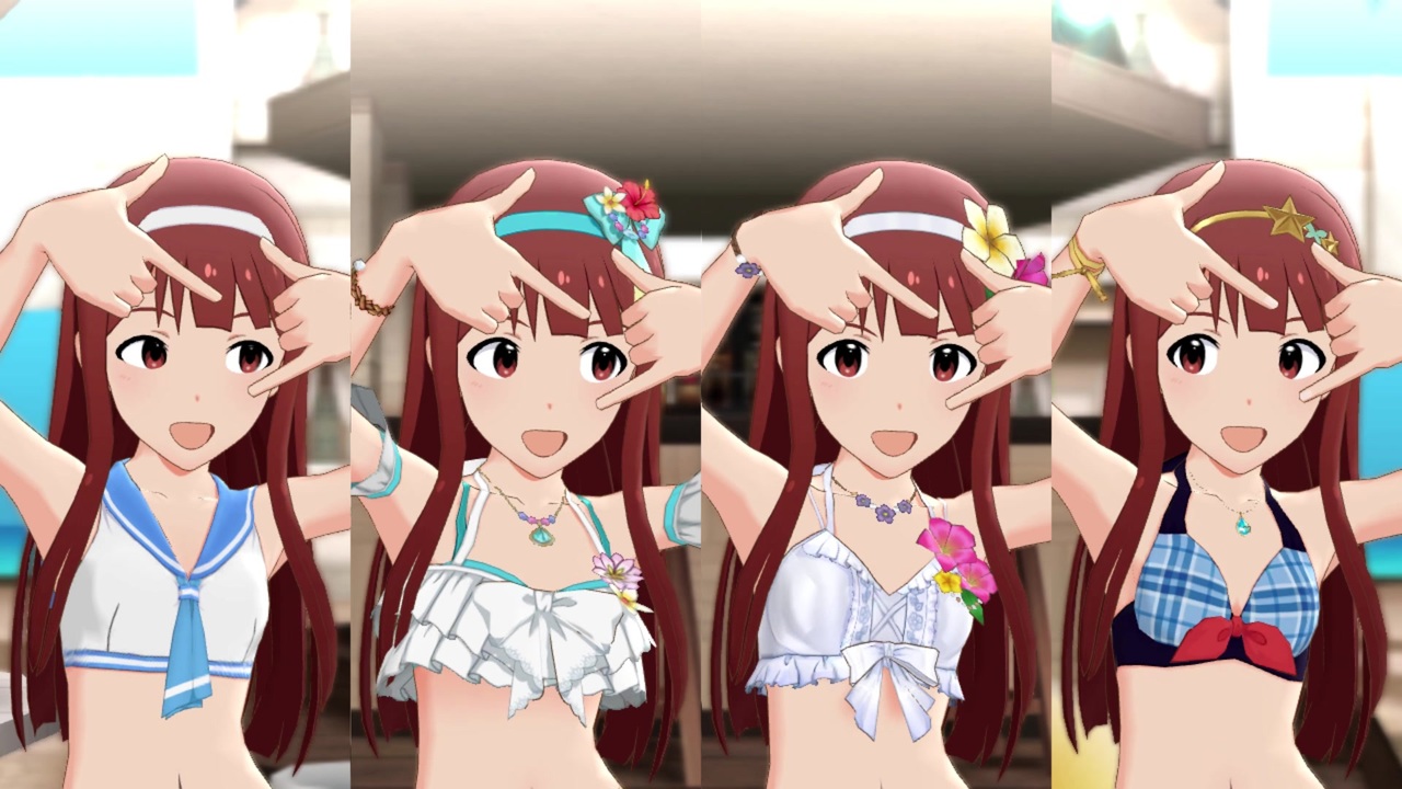 幸せ空間。<br>水着が4種類集まったので、カッとなって作りました。<br>チートではなくコツコツと合成しています。<br>歌は琴葉ソロと4人版を編集して使っています。<br><br><span style="color: #ff0000;">新作:</span><a href="https://www.nicovideo.jp/watch/sm41392278" class="watch">sm41392278</a><span style="color: #ff0000;">『Dreaming!』13人ライブMAD作りました。こちらも御覧下さい。</span><br><br>自作動画: <a href="https://www.nicovideo.jp/mylist/7355096" target="_blank" rel="noopener">mylist/7355096</a><br>Twitter: kemaribu<br>前作: 加蓮 加蓮 加蓮『Trinity Field』デレステ <a href="https://www.nicovideo.jp/watch/sm36792943" class="watch">sm36792943</a><br>前作(合作): ミリオンライブメドレー合作「Unite&Ignite!」<a href="https://www.nicovideo.jp/watch/sm34453779" class="watch">sm34453779</a> (Thank You! 13人LIVEパート) <br><br>eskさん、マスネP/相楽さん、ゆぅトピアPさん、いちいちさん、エレナ、恵美さん、<br>他大勢の皆様(全て挙げられなくてすみません)、広告まことにありがとうございます!