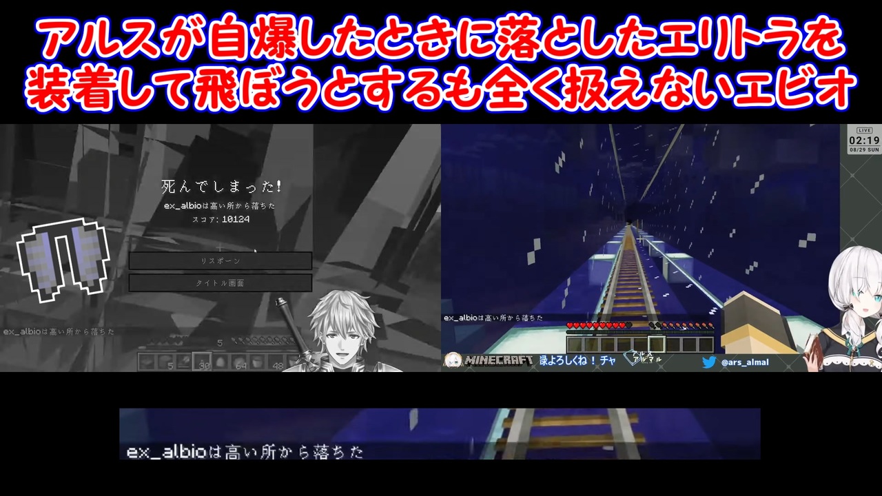 エビオにエリトラはまだ過ぎたオモチャかもしれない…<br><br>本家参考動画<br>・エクス・アルビオ<br>【マイクラ】5分!?すごい裏技で超巨大ハウスを建築する!!【にじさんじ/エクス・アルビオ】<br><a href="https://youtu.be/vaxGWd9W6cc" target="_blank" rel="noopener nofollow">https://youtu.be/vaxGWd9W6cc</a><br>・アルス・アルマル<br>#21【Minecraft 】 過去最大建築挑戦!(僕がつくった中で) ~場所決め~ season3【アルス・アルマル/にじさんじ】<br><a href="https://youtu.be/A7gG-5nN9pk" target="_blank" rel="noopener nofollow">https://youtu.be/A7gG-5nN9pk</a><br><br>参考元チャンネル&Twitter<br>・エクス・アルビオ<br><a href="https://www.youtube.com/channel/UCIytNcoz4pWzXfLda0DoULQ" target="_blank" rel="noopener nofollow">https://www.youtube.com/channel/UCIytNcoz4pWzXfLda0DoULQ</a><br><a href="https://twitter.com/Ex_Albio" target="_blank" rel="noopener nofollow">https://twitter.com/Ex_Albio</a><br>・アルス・アルマル<br><a href="https://www.youtube.com/channel/UCdpUojq0KWZCN9bxXnZwz5w" target="_blank" rel="noopener nofollow">https://www.youtube.com/channel/UCdpUojq0KWZCN9bxXnZwz5w</a><br><a href="https://twitter.com/ars_almal" target="_blank" rel="noopener nofollow">https://twitter.com/ars_almal</a><br><br>ニコニコのダイコンマンリスト<br>「バーチャルYouTuberシリーズ」↓<br><a href="https://www.nicovideo.jp/mylist/62551838" target="_blank" rel="noopener">mylist/62551838</a><br>「バーチャルYouTuberシリーズ2」↓<br><a href="https://www.nicovideo.jp/mylist/67858437" target="_blank" rel="noopener">mylist/67858437</a><br>「バーチャルYouTuberシリーズ3」↓<br><a href="https://www.nicovideo.jp/mylist/71340675" target="_blank" rel="noopener">mylist/71340675</a><br><br>ダイコンマンのTwitter<br><a href="https://twitter.com/Daikon_Man_V" target="_blank" rel="noopener nofollow">https://twitter.com/Daikon_Man_V</a>