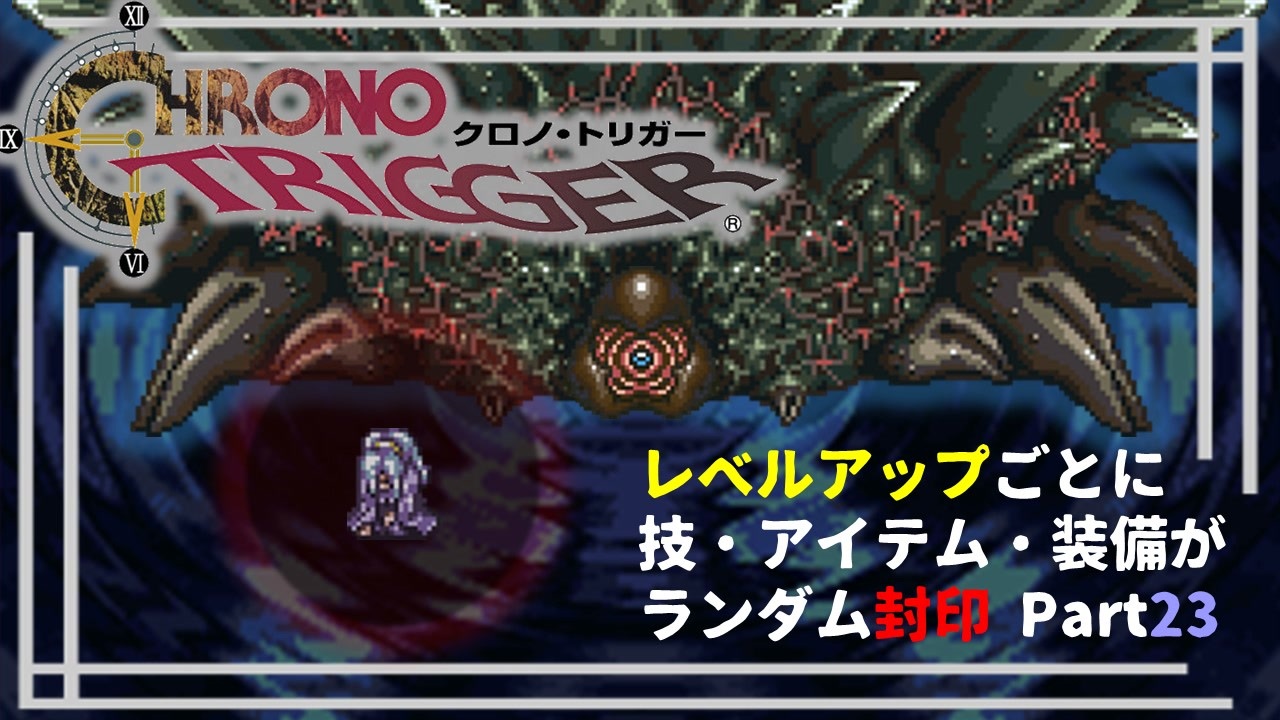 <strong><u>左枠と最後の一覧は【未封印物一覧】です(念押し)</u></strong><br><br>(おまけの戦闘は、主にクロトリ初見さん向けです。今までほとんどの敵がtake1だったので、難易度が分かりづらく感じたと思います。現在の状況を理解するのには、これが1番手っ取り早い。)<br><br>●縛り内容●<br>①レベルアップごとにランダムに技・アイテム・装備が封印(えちごやのさいふ禁止)<br>②逃走禁止<br>③最速アクティブ100%クリア<br>④状況再現・バグ禁止<br><br>●備考●(Part.1以降に動画内で説明)<br>・技が封印されても、その技を使ったれんけい技は使用可能。<br>・再加入によるレベルアップは不問。<br>・戦闘に出ていなくても、レベルアップした場合は封印対象。<br>・封印の関係上倒せないボスが出てきた際、1封印を犠牲にすることでバトルスピードを1下げることが可能(詰み対策の救済措置)<br>・魔王は倒さない。(暫定)<br>・封印されたアイテム・装備は売却不可。<br>・淫夢関係の映像&音声は使用しません。<br><br><br>親動画(リスペクト元)→<a href="https://www.nicovideo.jp/watch/sm37350612" class="watch">sm37350612</a><br><br> <a href="https://www.nicovideo.jp/watch/sm39256131" class="watch">sm39256131</a> ←前回 | 次回→ 9/18(土)<br><br>遅れてyoutubeにも投稿予定<br><br>twitter→ <a href="https://twitter.com/kindshine_may" target="_blank" rel="noopener nofollow">https://twitter.com/kindshine_may</a><br><br>Youtube→<a href="https://www.youtube.com/channel/UC1auHUtviW6bfxjkH0ZtiRA" target="_blank" rel="noopener nofollow">https://www.youtube.com/channel/UC1auHUtviW6bfxjkH0ZtiRA</a>