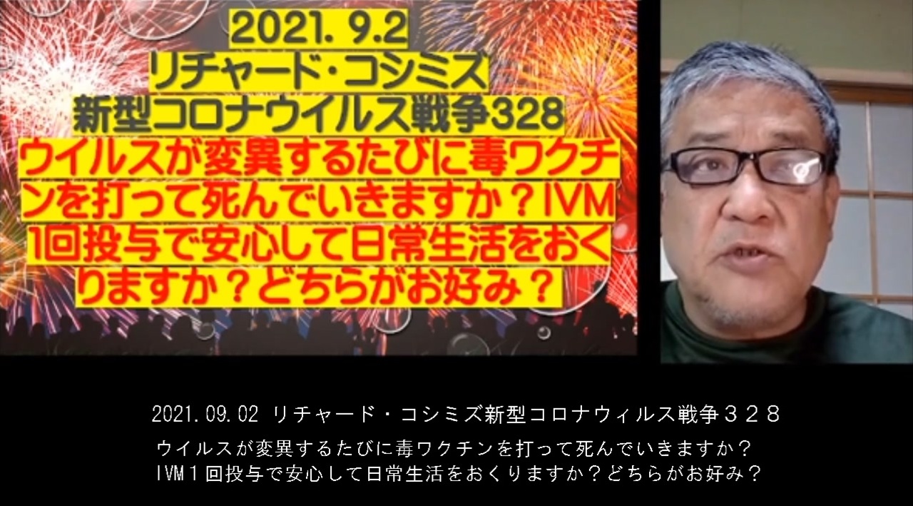 ●この種の方々が「淘汰」される、犠牲者となることは仕方がない。人口削減テロは、ほぼ失敗するが、数百万の犠牲者が出るのは避けられそうにない。<br>●真剣に生き、自分の頭で考え、適正な判断のできた人だけが生き残る。多勢に迎合したり、権威に盲従した思考停止者は、自然に消滅する。コロナ禍は、日本民族の平均的な質の向上という思わぬ副反応をもたらす。賢者が残り、コロナにより賢者になった日本人が日本を牽引する。これからの日本はすごい国になる。(今でも凄い国ではあるが。)<br>●渋谷の行列の情弱さんたちは、ワクチンを打てばコロナに感染しないと思っているらしいが、何を根拠あるのか?<br>●「ワクチン2回打った人が感染・重症化」「ワクチン先進国の英國やイスラエルで感染爆発」といったニュースは耳に入らないのか?ワクチンを打ったものに限って感染しているという分析を知らないのか?莫迦じゃないのか?<br>●ノーベル賞受賞の大村教授の発明したIVMで、コロナは簡単に治療も予防もできると、ちょっと調べればわかるはずだが。なぜ、知らない?ワクチンだけが感染予防の方法だと、どうして思い違いしているのか?<br>●政府が奨励しないからIVMは効果がない?この期に及んで菅義偉政権風情をまだ信用しているのか?<br>●FDAがIVMはコロナに効かないと言っているから?FDAが誰に支配されているかわかりますか?IVMを潰したい理由はわかりますか?<br>●ワクチンが危ないなら、なぜ、医師は積極的に打つのかって?2ヶ月で3000万円も荒稼ぎで本業そっちのけ。(菅政権のワクチン奨励策)<br>●ワクチンが危ないなら、なんで、マスコミはワクチンを奨励するの?マスコミは全世界でDS裏社会によって支配されています。今、ワクチン大虐殺を進めているのは、そのマスコミを経営する大富豪たち。分かった?<br>●IVMを推進すると、DS裏社会が強大で執拗な攻撃を仕掛けてくる。IVMを許せば、人口削減ワクチンは排除されてしまう。<br>●「ペルーで感染者が激減したのはIVMのおかげ」という北里大学の記事が見れませんが?<br>●WHOはIVMを一切使うなと言ってるではないか!誰が、WHOの最大のスポンサーであるか知っていますか?<br>●インドネシアは、IVMでコロナ禍から離脱済みですが、なぜ、報道されないかわかりますか?<br>●日本のコロナ治療体制は「ない」に等しい。自宅療養で呼吸困難になるまで悪化させてから、入院。入院後、人工呼吸以外に特に治療は無し。→「熱が出たら、即、IVM」「月1で予防投与」で全面解決。重症化せず。IVMさえ、手元にあれば、病院のお世話にもならない。コロナ禍はすぐに消える。<br>●政府が「故意の無策」で国民を孤独死させている。有志が手持ちのIVMを配布するしか、救う道はない。<br>