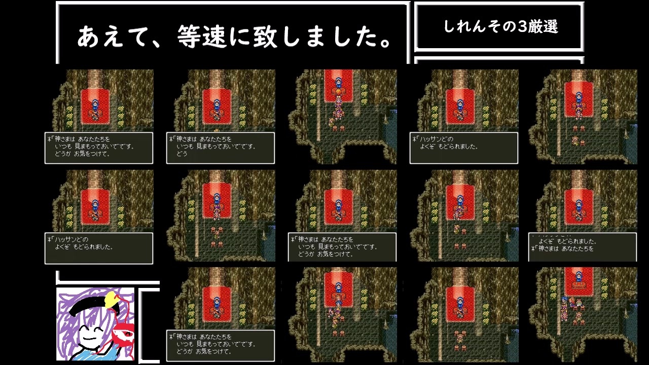 確かに試練の名に相応しいダンジョンでした。<br><br>※ネタバレ要素はあります。<br><br>【動画内容】<br>・ホルストック~試練の洞窟攻略<br>・アイテムドロップコーナー<br><br><a href="https://www.nicovideo.jp/watch/sm39215013" class="watch">sm39215013</a> ←前 次→ <a href="https://www.nicovideo.jp/watch/sm39380401" class="watch">sm39380401</a><br><br><strong>※データ損失を避けるため、レトロフリークを使用してプレイしております。<br>当たり前ですが改造・チート等は使いません。</strong><br>(そもそも初期設定のままだと使えません!安心!)<br><br><span style="font-size: 16px;"><strong><u>本シリーズのプレイ内容</u></strong></span><br><span style="font-size: 16px;"><strong>1.アイテムコンプリート(モンスタードロップもコンプ)<br>2.一部を除く仲間モンスターを3匹コンプリート<br>3.全仲間キャラの職業・レベルをMAX<br>4.失踪しない</strong></span><br><br>主に上記4つですが他にも色々やろうと考えております。<br><br>この動画で利用している株式会社スクウェア・エニックスを代表とする共同著作者が権利を所有する著作物及びスギヤマ工房有限会社が権利を所有する楽曲の転載・配布は禁止いたします。<br>© 1995 ARMOR PROJECT/BIRD STUDIO/HEART BEAT/SQUARE ENIX All Rights Reserved.<br>© SUGIYAMA KOBO<br>© Square Enix<br>─────────────────────────────<br><br>Youtube版 → <a href="https://youtu.be/D3FrW2UeSFA" target="_blank" rel="noopener nofollow">https://youtu.be/D3FrW2UeSFA</a><br>Youtubeチャンネル → <a href="https://www.youtube.com/channel/UCEeOoDzkZH39MbtPwS_OPPQ" target="_blank" rel="noopener nofollow">https://www.youtube.com/channel/UCEeOoDzkZH39MbtPwS_OPPQ</a><br>Twitter → <a href="https://twitter.com/donko_di" target="_blank" rel="noopener nofollow">https://twitter.com/donko_di</a><br>ニコニコ → <a href="https://www.nicovideo.jp/user/32779057" target="_blank" rel="noopener nofollow">https://www.nicovideo.jp/user/32779057</a>