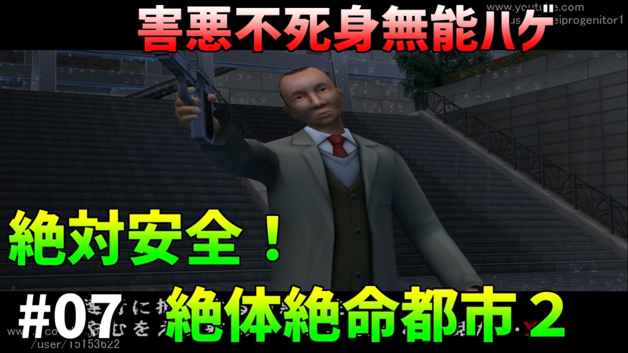 絶体絶命都市2<br>Copyright©Granzella Inc. All rights reserved.<br><br>絶体絶命都市2を絶対安全にプレイしました<br><br>・小学生並のあらすじ<br>変装して警察署から脱出した私は自分が指名手配されていることを知った<br>増水が激しく、高い所に逃げようととしたが刑事に見つかってしまったが刑事は鉄砲水に流されてしまった<br>もう二度と会う事は無いでしょう<br><br>途中でスーツを着た男性に会ったが、この人は私の味方になってくれた?<br>男の協力を得て地下鉄駅に潜り込み兄さんのマンションに向かった<br>駅から出ると水に流されたはずの刑事が何故か追ってきたが<br>今度は土砂崩れで流れていったので流石にもうおしまいだと思う<br><br>その後こんな床上浸水の状況なのに地下トンネルを通ってお兄さんのマンションに向かい<br>案の定溺れ死にかけたが何とかトンネルを抜けれました<br><br>おっそうだ20時からベロニカ最終回だぞゾ<br><br />動画に「いいね!」「マイリスト登録」よろしくお願いします。<br><br>・おすすめ<br>[TAS]Grand Theft Auto 3 Part1→<a href="https://www.nicovideo.jp/watch/sm14718961" class="watch">sm14718961</a><br>[TAS]MaxPayne デッドターゲット Part1→<a href="https://www.nicovideo.jp/watch/sm15093299" class="watch">sm15093299</a><br>[TAS]michigan Part1→<a href="https://www.nicovideo.jp/watch/sm18393230" class="watch">sm18393230</a><br><br>サポート頂けると励みになります<br>魔界塔士のサポーターになる→<a href="https://creator-support.nicovideo.jp/registration/15153622" target="_blank" rel="noopener nofollow">https://creator-support.nicovideo.jp/registration/15153622</a><br><br>TAS動画まとめ→<a href="https://koeiprogenitor.com/tas/matome/" target="_blank" rel="noopener nofollow">https://koeiprogenitor.com/tas/matome/</a><br>つべ→<a href="https://www.youtube.com/user/koeiprogenitor1/" target="_blank" rel="noopener nofollow">https://www.youtube.com/user/koeiprogenitor1/</a><br>インスタ→<a href="https://www.instagram.com/makaitoshi" target="_blank" rel="noopener nofollow">https://www.instagram.com/makaitoshi</a><br><br>本編→シリーズ一覧見てね<br>