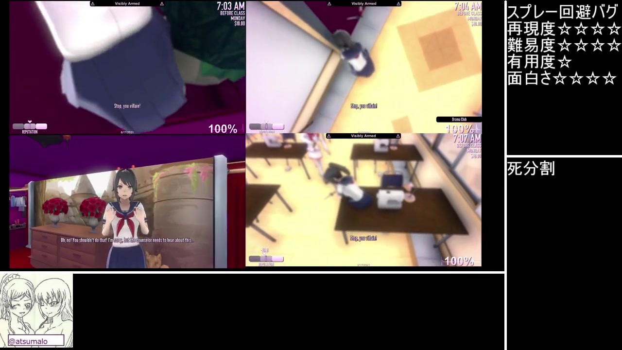 精度難民なのがバレてしまったので初投稿です<br><br>今回も懲りずにバグを紹介していきます。RTAや通常プレイでの有用性は皆無です<br><br>バラバラグビー兄貴のサイコが過ぎる動画→<a href="https://www.nicovideo.jp/watch/sm39261704" class="watch">sm39261704</a><br>Pantherの創作譜面(tjaのみ)→<a href="https://ux.getuploader.com/megurinegod/download/43" target="_blank" rel="noopener nofollow">https://ux.getuploader.com/megurinegod/download/43</a><br><br>10/9追記<br>この動画はver.272(2021/6/17ビルド)の動画です。他のバージョンで同様のバグが起きるかは知らん<br><br><br><br /><br>ス〇ブラ実況<a href="https://www.nicovideo.jp/series/257911" target="_blank" rel="noopener">series/257911</a><br>某ヤンデレゲーの翻訳部<a href="https://www.nicovideo.jp/series/262009" target="_blank" rel="noopener">series/262009</a><br>某ヤンデレゲーver.272(6/17ビルド)の動画<a href="https://www.nicovideo.jp/series/257333" target="_blank" rel="noopener">series/257333</a><br>某ヤンデレゲーver.273(10/10ビルド)以降の動画<a href="https://www.nicovideo.jp/series/268937" target="_blank" rel="noopener">series/268937</a><br>RTA <a href="https://www.nicovideo.jp/series/272967" target="_blank" rel="noopener">series/272967</a><br>車泥棒in Vice City <a href="https://www.nicovideo.jp/series/276383" target="_blank" rel="noopener">series/276383</a><br>ずんだの精霊を性的搾取する動画 <a href="https://www.nicovideo.jp/series/290205" target="_blank" rel="noopener">series/290205</a><br>ボイボそらおね〇ョタASMROID <a href="https://www.nicovideo.jp/series/307115" target="_blank" rel="noopener">series/307115</a><br>エンゲージ <a href="https://www.nicovideo.jp/series/384190" target="_blank" rel="noopener">series/384190</a>