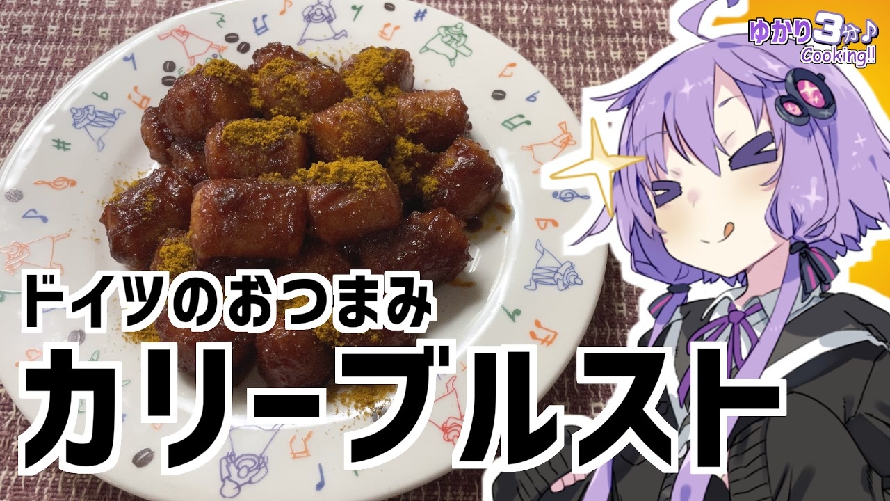 結月ゆかりを使用した料理動画です<br><br>カリーブルスト作りました!<br>意外に甘いのね、ビックリ!<br><br>くまモンウインナーばかりが狙われる理由は『いいね!』を押して確認してくれよな!<br><br>今回使用した材料<br>ウインナー:8本 ケチャップ:大さじ2<br>ウスターソース:大さじ1 カレー粉:小さじ1<br>ハチミツ:小さじ1 ニンニク:小さじ1/2<br>カレー粉(仕上げ用):少々<br><br>ハッシュドポテト:<a href="https://www.nicovideo.jp/watch/sm39296673" class="watch">sm39296673</a><br>まさかのファスト文学。5分くらいで分かる『斜陽』:<a href="https://www.nicovideo.jp/watch/sm39269927" class="watch">sm39269927</a><br>蹴上の絶景お花見スポット!JK旅:<a href="https://www.nicovideo.jp/watch/sm38890137" class="watch">sm38890137</a><br><br>オススメのボイロ劇場<br>茜ちゃんと葵ちゃんの現代怪異占い:<a href="https://www.nicovideo.jp/watch/sm38263500" class="watch">sm38263500</a><br><br>ツイッター:<a href="https://twitter.com/mrt89244817" target="_blank" rel="noopener nofollow">https://twitter.com/mrt89244817</a>
