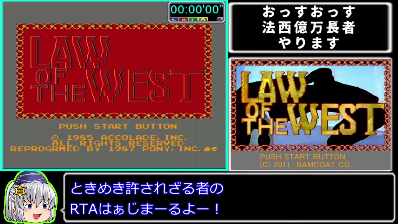 RTA第十五弾は『ロウ・オブ・ザ・ウエスト 西部の掟』のフルスコアRTAです。<br>本当は十四弾がこっちで十五弾がFF1(PR)でしたが、右枠を作るのが面倒で放置してたら序列が入れ替わってしまいました。どうでもいいね。<br><br>電源投入~11ステージクリア後タイトル表示<br> <br>次→<a href="https://www.nicovideo.jp/watch/sm38766918" class="watch">sm38766918</a><br>マイリスト|<a href="https://www.nicovideo.jp/mylist/66763650" target="_blank" rel="noopener">mylist/66763650</a><br>自作RTA_Part1集|<a href="https://www.nicovideo.jp/mylist/66660389" target="_blank" rel="noopener">mylist/66660389</a><br>自作RTA動画まとめ|<a href="https://www.nicovideo.jp/mylist/67574503" target="_blank" rel="noopener">mylist/67574503</a><br><br />※なんか面白いタグ消えちゃうらしいので僕が設定する以外でリンクタグを付けるのはやめてね。よしなに。