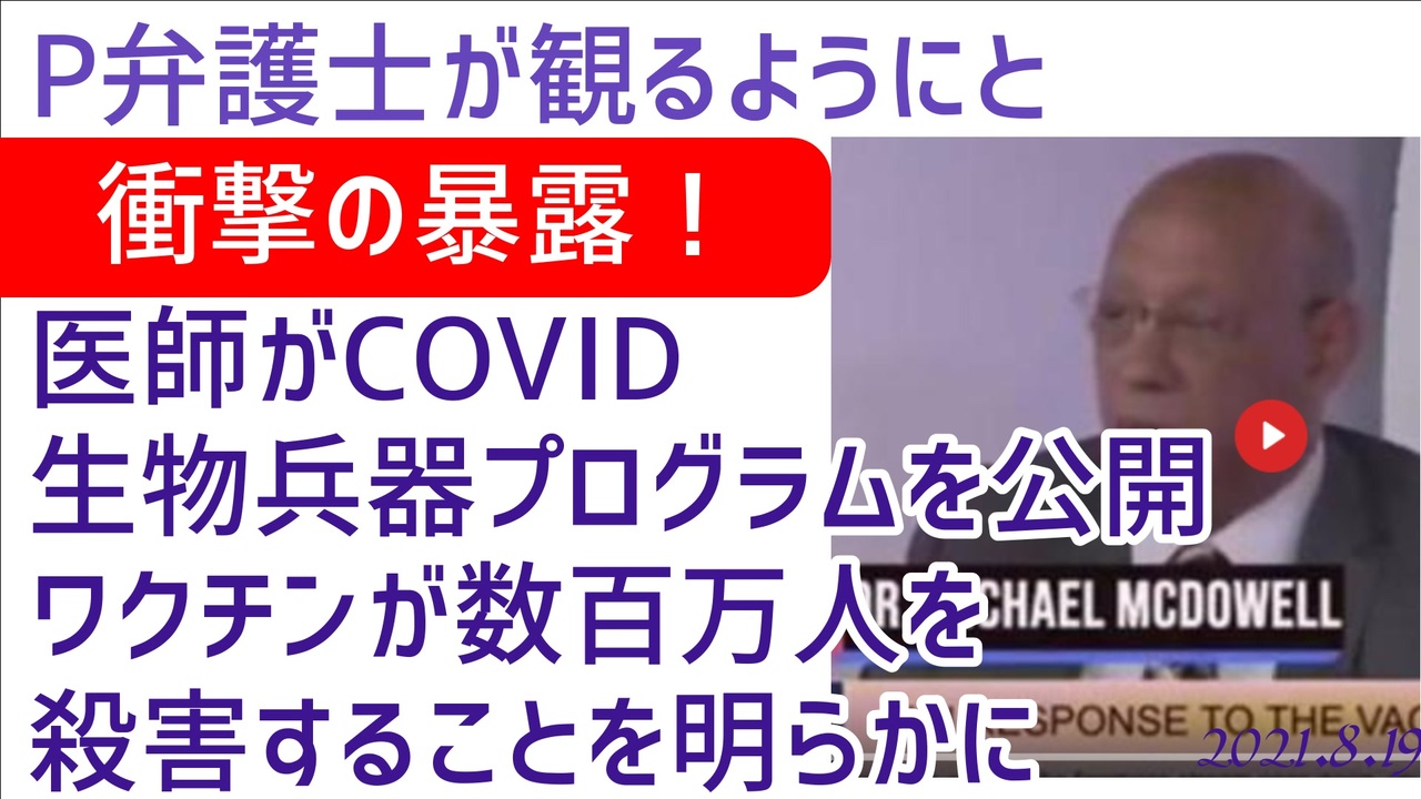 アメリカ大統領選挙の不正を糾弾し検証事実を積み上げ続けているシドニー・パウエル女史が、ご自身のテレグラムで紹介していた動画を、AIで日本語にしました。Dr Michael McDwell マイケル・マクドウェル博士の話すスピードが速すぎて吹替に適さないので、朗読にてお届けします。機械訳をほぼそのまま朗読していますので、わかりにくいところも多々あると思いますが、ご容赦ください。<br>■元動画<br>SHOCKING REVELATION - DOCTOR EXPOSES COVID BIOWEAPONS PROGRAM & REVEALS VACCINE WILL KILL MILLIONS<br><a href="https://www.bitchute.com/video/vTFMMasGQPyb/" target="_blank" rel="noopener nofollow">https://www.bitchute.com/video/vTFMMasGQPyb/</a><br /><br>YouTube「ことふみ郡山2」チャンネルも御贔屓に<(_ _)><br><a href="https://www.youtube.com/channel/UC_5GB6TN1b2gwEmAazZDxzg" target="_blank" rel="noopener nofollow">https://www.youtube.com/channel/UC_5GB6TN1b2gwEmAazZDxzg</a>