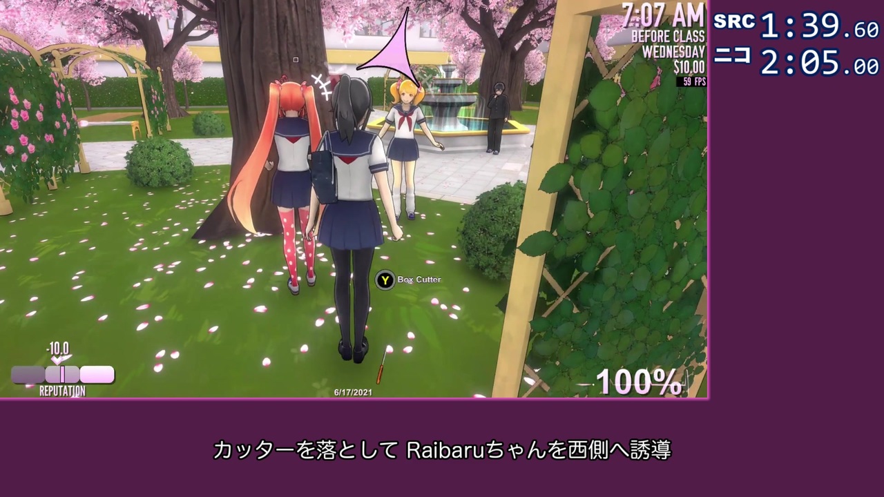 炎上案件その2.恋せよ乙女,その命,燃え尽きるまで.<br><br>今回はLABO様の記録を13秒更新しました.世界1位です.<br>うまくRaibaruちゃんに警告させないようにできたのが鍵になりました.<br>細かいミスもあるのでまだ更新の余地があります.<br><br>本編は <a href="#" class="seekTime" data-seekTime="1:22" onclick="seekNicoPlayer('#1:22'); return false;">#1:22</a> から,オマケは <a href="#" class="seekTime" data-seekTime="5:19" onclick="seekNicoPlayer('#5:19'); return false;">#5:19</a> からどうぞ.<br><br><strong>・</strong><strong><u>タイマー開始: 空ファイル選択</u></strong><br><strong>・</strong><strong><u>タイマー停止: クレジットの Skip アイコン表示</u></strong><br><strong>・</strong><strong><u>ロード時間は,SpeedRun→タイマーポーズ,ニコニコ→計測</u></strong><br><strong>・</strong><strong><u>ルール: Burn(焼死)で排除</u></strong><br><br>先駆者様(LABO405様): <a href="https://www.nicovideo.jp/watch/sm38914450" class="watch">sm38914450</a><br>うなぎだれSenpai: <a href="https://seiga.nicovideo.jp/seiga/im10794067" target="_blank" rel="noopener">im10794067</a><br>自作のYanSim風タイマー: <a href="https://1drv.ms/f/s!AjyalerF3xBChVqfk9_bqHHM9p_C" target="_blank" rel="noopener nofollow">https://1drv.ms/f/s!AjyalerF3xBChVqfk9_bqHHM9p_C</a><br><br>ヤンデレシミュレータ本家: <a href="https://www.yanderesimulator.com/" target="_blank" rel="noopener nofollow">https://www.yanderesimulator.com/</a><br><br><strong>追記:</strong> Monika姉貴兄貴こと Ri__________n様が記録更新しました.→ <a href="https://www.nicovideo.jp/watch/sm39376251" class="watch">sm39376251</a>