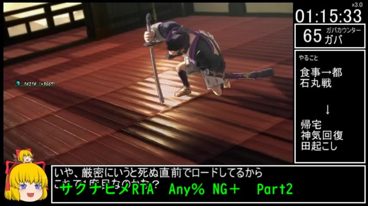 (ほとんどの壁という壁を抜けてると思うので)初投稿です。<br><br>いろいろ壁抜けも進歩してこのあたり早くなりましたね。<br>でもこれ走った後も新しい壁抜けが<br>どんどん発見されてもうカオス状態です<br><br>使用バージョン:Jun,3,2021<br>レギュレーション:Any% NG+<br>計測区間<br> 開始点:最初から選択時<br> 終了点:クリア後セーブする瞬間<br>難易度選択<br> 戦闘:低<br> 稲作:低<br>その他<br> バグ利用に制限なしレギュレーション<br> (他セーブデータを利用した持ち越しバグ利用許可)<br><br>次→今月中・・・には?<br>Part1→<a href="https://www.nicovideo.jp/watch/sm39268663" class="watch">sm39268663</a><br>マイリスト→<a href="https://www.nicovideo.jp/mylist/70187820" target="_blank" rel="noopener">mylist/70187820</a><br><br>RTA/TAのPart1集→<a href="https://www.nicovideo.jp/mylist/70191093" target="_blank" rel="noopener">mylist/70191093</a><br>縛.りプレイのPart1集→<a href="https://www.nicovideo.jp/mylist/70191091" target="_blank" rel="noopener">mylist/70191091</a>