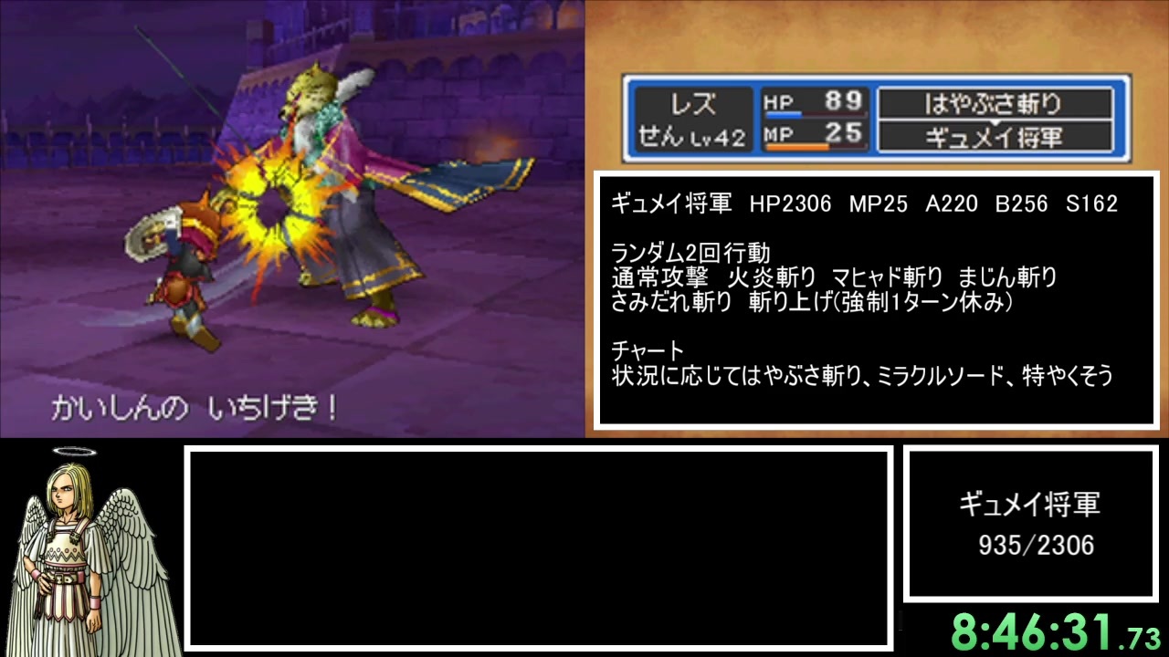 ドラクエ9の一人旅RTA<br>計測区間は電源投入からto be continued消失まで<br>ルイーダの酒場での仲間の加入及び外部通信は禁止<br><br>本日世界記録を出しました!いいねに詳細あります!<br>この動画は自分が記録出す前に編集したのでそういう前提で見てください<br><br>part1→<a href="https://www.nicovideo.jp/watch/sm39230922" class="watch">sm39230922</a><br>次→シリーズからよろしく、概要欄の一番下にあるよ<br>これのマイリス→<a href="https://www.nicovideo.jp/mylist/71653868" target="_blank" rel="noopener">mylist/71653868</a><br>無編集垂れ流し→<a href="https://youtu.be/4HSXpBJdLs4" target="_blank" rel="noopener nofollow">https://youtu.be/4HSXpBJdLs4</a><br>うp動画まとめ→<a href="https://www.nicovideo.jp/mylist/71230916" target="_blank" rel="noopener">mylist/71230916</a><br><br>ゲルニック将軍~暗黒皇帝ガナサダイまで<br><br>※この動画の一部または全部を外部サイト等へ転載することを禁じます。<br> 動画紹介等で動画の一部を引用するのは構いません。<br><br>この動画で利用している株式会社スクウェア・エニックスを代表とする共同著作者が権利を所有する著作物及びスギヤマ工房有限会社が権利を所有する楽曲の転載・配布は禁止いたします。<br>© 2009 ARMOR PROJECT/BIRD STUDIO/LEVEL-5/SQUARE ENIX All Rights Reserved.<br>© SUGIYAMA KOBO<br>Ⓟ SUGIYAMA KOBO<br><br>追記:かぶとわりは防御力だったわね