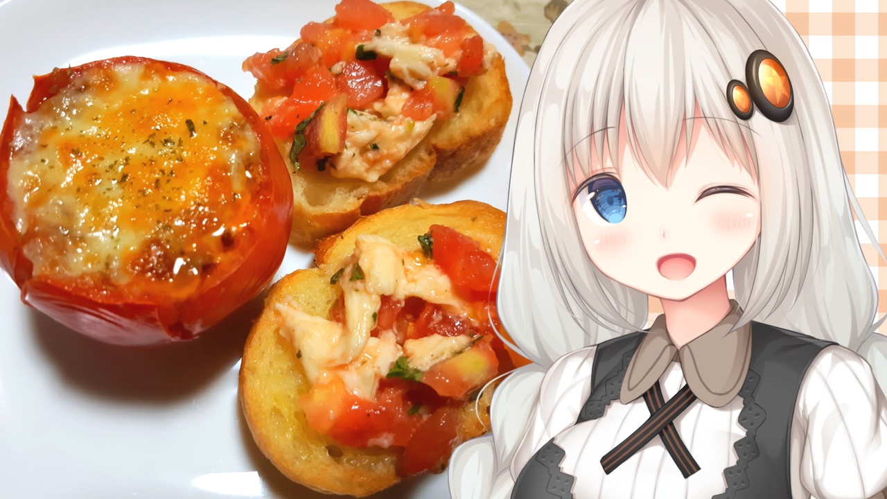今回はトマトを使ってトマトカップ&ブルスケッタを作ります!<br>ピザ用チーズを二層にした食べ応えがあるトマトの肉詰め&トマトの酸味とガーリックトーストの相性抜群のブルスケッタ!<br>見た目もお洒落に仕上がります!<br>------------------------------------------------------<br>材料(2人前)<br>トマトカップ<br>〇トマト:2個<br>〇タマネギ:1/2個<br>〇牛豚合挽き肉:150g<br>〇オリーブオイル:大さじ1<br>〇ケチャップ:大さじ1<br>〇塩コショウ:少々<br>〇ナツメグ:適量<br>〇ピサ用チーズ:お好みの量<br>〇粉パセリ:少々<br><br>ガーリックトースト<br>◎フランスパン:1/2個<br>◎マーガリン:20g<br>◎おろしニンニク:大さじ1<br>◎粉パセリ:少々<br><br>ブルスケッタ<br>●トマトの中身:2個分<br>●生バジル:6枚<br>●モッツァレラチーズ:100g<br>●ハーブソルト:少々<br>●オリーブオイル:大さじ1<br>●粗挽きコショウ:少々<br>-------------------------------------------------------<br><br><strong>いつもたくさんのコメント・広告・マイリスト登録・いいねありがとうございます!</strong><br><br>立ち絵:むらの様<br>素材:ニコニコモンズ様・写真AC様・効果音ラボ様<br><br>次回⇒「おくずかけ」<a href="https://www.nicovideo.jp/watch/sm39376644" class="watch">sm39376644</a><br>前回⇒「えびのカレーパエリア」<a href="https://www.nicovideo.jp/watch/sm39318082" class="watch">sm39318082</a><br>一覧リスト⇒<a href="https://www.nicovideo.jp/mylist/71603494" target="_blank" rel="noopener">mylist/71603494</a><br><br>レトロゲーム実況シリーズ⇒<a href="https://www.nicovideo.jp/mylist/59467034" target="_blank" rel="noopener">mylist/59467034</a><br>ボイロの簡単おつまみシリーズ⇒<a href="https://www.nicovideo.jp/mylist/67487760" target="_blank" rel="noopener">mylist/67487760</a><br>ゲーム実況以外に制作したもの⇒<a href="https://www.nicovideo.jp/mylist/63059415" target="_blank" rel="noopener">mylist/63059415</a><br>ボイロラジオ⇒<a href="https://www.nicovideo.jp/mylist/65848554" target="_blank" rel="noopener">mylist/65848554</a><br>いただいた素敵なイラスト⇒<a href="https://seiga.nicovideo.jp/clip/2154778" target="_blank" rel="noopener">clip/2154778</a><br><br>Twitter⇒<a href="https://twitter.com/fio_kamo" target="_blank" rel="noopener nofollow">https://twitter.com/fio_kamo</a><br>