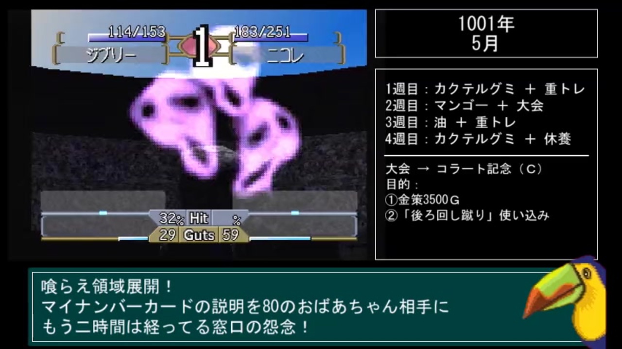 ↓クジラクションaとクジラいホゲとし戦わせてます<br><a href="https://youtu.be/6GJw87leicY" target="_blank" rel="noopener nofollow">https://youtu.be/6GJw87leicY</a><br><br><span style="font-size: 13px;"><a href="https://www.nicovideo.jp/watch/sm39241405" class="watch">sm39241405</a> ≪前|<a href="https://www.nicovideo.jp/mylist/66892364" target="_blank" rel="noopener">mylist/66892364</a>|次≫ <a href="https://www.nicovideo.jp/watch/sm39622530" class="watch">sm39622530</a></span><br><br>★ 本シリーズのPart1-1:<a href="https://www.nicovideo.jp/watch/sm35940916" class="watch">sm35940916</a><br>★ 育成結果まとめブログ:<a href="https://niconicojoytori.hatenablog.jp/about" target="_blank" rel="noopener nofollow">https://niconicojoytori.hatenablog.jp/about</a><br><br>☆ 特別企画YouTube(ボイスチェンジ配信・エキシビジョンマッチ)<br><a href="https://www.youtube.com/channel/UCcsCZPs_ZmFzsC8A4xr43-g/" target="_blank" rel="noopener nofollow">https://www.youtube.com/channel/UCcsCZPs_ZmFzsC8A4xr43-g/</a><br><br><概要><br>PSゲーム「モンスターファーム2」の縛りプレイです。<br>スタートから<span style="font-size: 13px;">殿堂入りまで、</span>1体だけで目指します。<br><br><span style="font-size: 13px;">① 初期セーブデータから開始 <br>② 市販CDからモンスターを再生(自作CDはダメ) <br>③ 他モンスターの再生禁止 (週送り・金策防止)<br>④ 殿堂入りを目指す <br>⑤ ドーピング系・ソンナバナナ・白銀モモの使用禁止</span><br><br>Twtitter:<a href="https://twitter.com/niconicojoytori" target="_blank" rel="noopener nofollow">https://twitter.com/niconicojoytori</a><br>ジョイ(鳥)@モンスターファーム@niconicojoytori