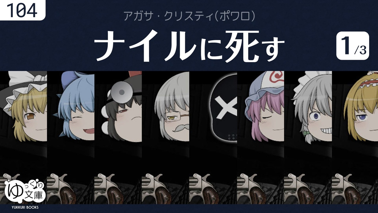 <span style="color: #ff0000;"><strong>104x1 愛がすべて──</strong></span><br>ナイル川をさかのぼる観光船で富豪のリネットが射殺された。第一容疑者のジャクリーンにはアリバイがある。居合わせたポワロが調べると、殺人に要した時間は2分、乗客全員に動機と機会があった。<br><span style="color: green;">Death on the Nile (1937) by Agatha Christie</span><br><br>(うp主より)<br>全3話46分。<br>なお、原作の乗客は<span style="font-size: 24px;">18名</span>です。<br><br>●ゆっクリスティ <a href="https://www.nicovideo.jp/mylist/59497715" target="_blank" rel="noopener">mylist/59497715</a><br>◆ミス・マープル<br><a href="https://www.nicovideo.jp/watch/sm24238713" class="watch">sm24238713</a> 完璧なメイド<br><a href="https://www.nicovideo.jp/watch/sm25512772" class="watch">sm25512772</a> 動機と機会<br><a href="https://www.nicovideo.jp/watch/sm26942176" class="watch">sm26942176</a> 青いゼラニウム<br><a href="https://www.nicovideo.jp/watch/sm30507320" class="watch">sm30507320</a> ポケットにライ麦を #1<br><a href="https://www.nicovideo.jp/watch/sm30511824" class="watch">sm30511824</a> #2<br><a href="https://www.nicovideo.jp/watch/sm30512247" class="watch">sm30512247</a> #3<br><a href="https://www.nicovideo.jp/watch/sm32946182" class="watch">sm32946182</a> パディントン発4時50分 #1<br><a href="https://www.nicovideo.jp/watch/sm38609548" class="watch">sm38609548</a> # 原作に近い版<br><a href="https://www.nicovideo.jp/watch/sm33091342" class="watch">sm33091342</a> 鏡は横にひび割れて<br><a href="https://www.nicovideo.jp/watch/sm37048244" class="watch">sm37048244</a> 予告殺人 #1<br><a href="https://www.nicovideo.jp/watch/sm37064125" class="watch">sm37064125</a> #2<br><a href="https://www.nicovideo.jp/watch/sm37075231" class="watch">sm37075231</a> #3<br><a href="https://www.nicovideo.jp/watch/sm37088256" class="watch">sm37088256</a> #4<br><a href="https://www.nicovideo.jp/watch/sm37202036" class="watch">sm37202036</a> #ドラ・バンナーは間違っていたか?<br><br>◆ポワロ<br><a href="https://www.nicovideo.jp/watch/sm25458371" class="watch">sm25458371</a> スズメバチの巣<br><a href="https://www.nicovideo.jp/watch/sm38918082" class="watch">sm38918082</a> オリエント急行の殺人:0 予告編<br><a href="https://www.nicovideo.jp/watch/sm38924413" class="watch">sm38924413</a> #1<br><a href="https://www.nicovideo.jp/watch/sm39365170" class="watch">sm39365170</a> <span style="color: #ff00ff;"><strong>ナイルに死す #1</strong></span><br><a href="https://www.nicovideo.jp/watch/sm39367017" class="watch">sm39367017</a> #2<br><a href="https://www.nicovideo.jp/watch/sm39368986" class="watch">sm39368986</a> #3<br><a href="https://www.nicovideo.jp/watch/sm40164143" class="watch">sm40164143</a> 消えた遺言書<br><br>◆ほか<br><a href="https://www.nicovideo.jp/watch/sm33975066" class="watch">sm33975066</a> そして誰もいなくなった (全2話+PV)<br><a href="https://www.nicovideo.jp/watch/sm42967435" class="watch">sm42967435</a> 招かれざる客 (全3話)<br><br>●ゆっくり文庫について<br>全部:<a href="https://www.nicovideo.jp/mylist/74874627" target="_blank" rel="noopener">mylist/74874627</a><br>近況:<a href="https://twitter.com/trynext" target="_blank" rel="noopener nofollow">https://twitter.com/trynext</a><br>---<br><br><br><br>