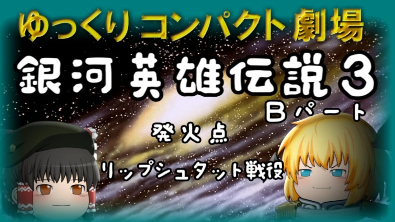 「ゆっくり文庫リスペクト」第七弾。<br><br>先にAパートをご覧ください。或いはAパートの「嵐の前」を見てからどうぞ。<br>ABパート合わせて56分もあるのに、どこが「コンパクト劇場」かって?<br>アニメだと5時間以上ある範囲をコンパクトに56分に収めました。<br>まあ!なんてコンパクト!<br><br>・解説1 <a href="#" class="seekTime" data-seekTime="0:08" onclick="seekNicoPlayer('#0:08'); return false;">#0:08</a><br>・発火点 <a href="#" class="seekTime" data-seekTime="0:47" onclick="seekNicoPlayer('#0:47'); return false;">#0:47</a><br>・解説2 <a href="#" class="seekTime" data-seekTime="4:29" onclick="seekNicoPlayer('#4:29'); return false;">#4:29</a><br>・リップシュタット戦役 <a href="#" class="seekTime" data-seekTime="7:57" onclick="seekNicoPlayer('#7:57'); return false;">#7:57</a><br>・解説3 <a href="#" class="seekTime" data-seekTime="22:16" onclick="seekNicoPlayer('#22:16'); return false;">#22:16</a><br><br>前(Aパート)⇒<a href="https://www.nicovideo.jp/watch/sm39377623" class="watch">sm39377623</a><br><br>次⇒<a href="https://www.nicovideo.jp/watch/sm39789441" class="watch">sm39789441</a><br />うp主のクリ奨扱いの番組(ギフト)<br>●動画投稿講座(海兵隊式)<br><a href="https://www.nicovideo.jp/watch/sm41183459" class="watch">sm41183459</a><br><br>●ほしいものリスト(同じものでも全然嬉しい)<br><a href="https://www.amazon.co.jp/hz/wishlist/ls/20X2QKDPSW451?ref_=wl_share" target="_blank" rel="noopener nofollow">https://www.amazon.co.jp/hz/wishlist/ls/20X2QKDPSW451?ref_=wl_share</a><br>●匿名で送る方法<br><a href="https://appllio.com/amazon-wish-list" target="_blank" rel="noopener nofollow">https://appllio.com/amazon-wish-list</a><br><br>うp主の動画<br>ゆっくりのワイドショー⇒<a href="https://www.nicovideo.jp/mylist/45200880" target="_blank" rel="noopener">mylist/45200880</a><br>ゆっくりコンパクト劇場⇒<a href="https://www.nicovideo.jp/mylist/67330756" target="_blank" rel="noopener">mylist/67330756</a><br>ゆっくりロードショー⇒<a href="https://www.nicovideo.jp/mylist/51596849" target="_blank" rel="noopener">mylist/51596849</a><br>おもちゃ箱⇒<a href="https://www.nicovideo.jp/series/265908" target="_blank" rel="noopener">series/265908</a><br>ようつべセブンのチャンネル<br><a href="http://www.youtube.com/c/sevenyoutube" target="_blank" rel="noopener nofollow">http://www.youtube.com/c/sevenyoutube</a><br><br>ニコニコ大百科 ゆっくりのワイドショー<br><a href="https://dic.nicovideo.jp/id/5337230" target="_blank" rel="noopener nofollow">https://dic.nicovideo.jp/id/5337230</a><br><br>ニコニコ大百科 ゆっくり文庫リスペクト<br><a href="https://dic.nicovideo.jp/id/5701480" target="_blank" rel="noopener nofollow">https://dic.nicovideo.jp/id/5701480</a><br><br><a target="_blank" href="https://qa.nicovideo.jp/faq/show/19424?site_domain=default" style="font-size: 13px;color: #657586; text-decoration: underline; line-height: 1.4">この動画は投稿者によって修正されました</a>