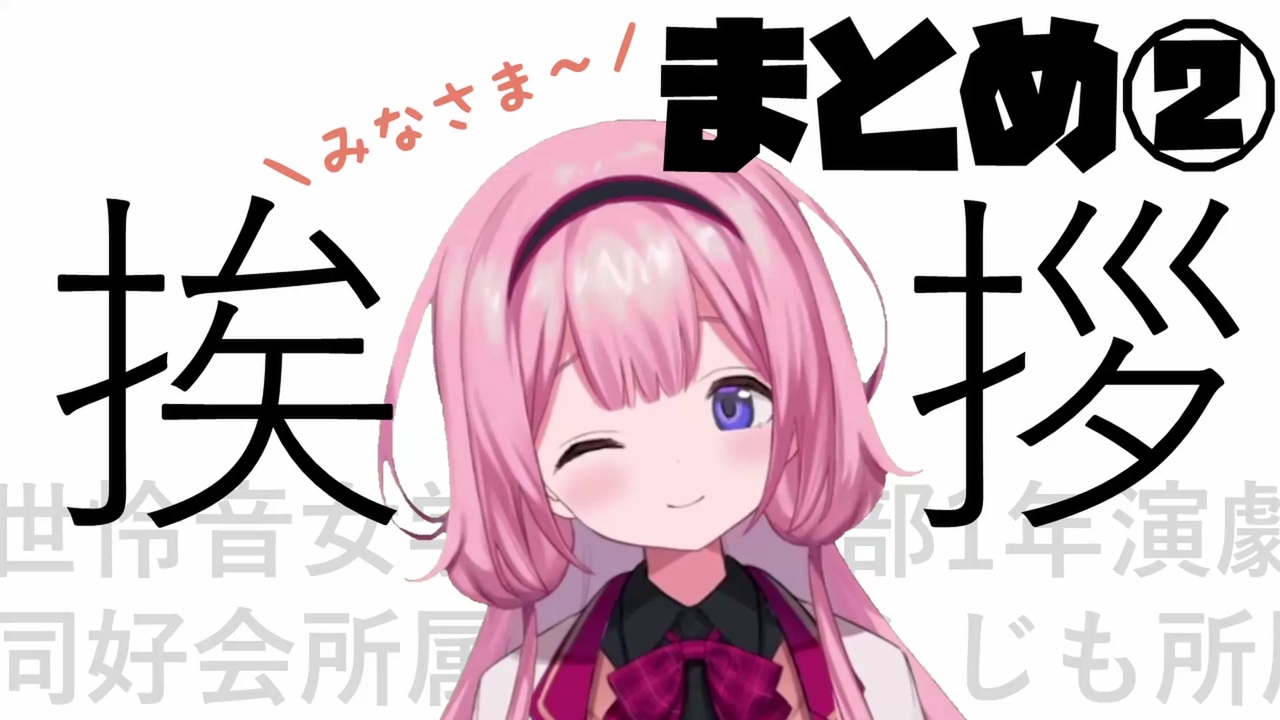 どうも~<br>色々オマージュを入れてみました<br><br>※Youtubeにも投稿しています。<br><a href="https://youtu.be/w4-X7BNhR0k" target="_blank" rel="noopener nofollow">https://youtu.be/w4-X7BNhR0k</a><br><br>■挨拶まとめシリーズ<br>①:<a href="https://www.nicovideo.jp/watch/sm39232591" class="watch">sm39232591</a><br>③:<a href="https://www.nicovideo.jp/watch/sm40850512" class="watch">sm40850512</a><br> <br>■元動画<br>再生リスト<br><a href="https://www.youtube.com/playlist?list=PL903oIvgZaBO0QgWbZiKlZC0KDbWsgkkx" target="_blank" rel="noopener nofollow">https://www.youtube.com/playlist?list=PL903oIvgZaBO0QgWbZiKlZC0KDbWsgkkx</a><br><br>■チャンネル<br>周央サンゴ<br><a href="https://www.youtube.com/channel/UCL_O_HXgLJx3Auteer0n0pA" target="_blank" rel="noopener nofollow">https://www.youtube.com/channel/UCL_O_HXgLJx3Auteer0n0pA</a>