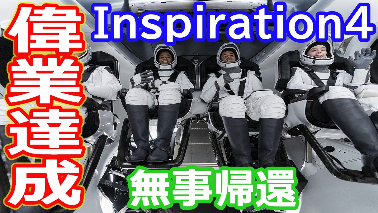 #スカイ三平 #その他の宇宙開発<br>2021年9月18日(現地時間)に4人の宇宙旅行者が無事帰還しました<br>この旅行では、宇宙機関や軍パイロットと関係ない民間人が、半年間の訓練を受けて3日間の宇宙旅行に挑戦した4人について解説します<br>ケネディ宇宙センターから打ち上げられて分離した後に出されたゼロGインジケーターとは?<br>宇宙旅行だけど科学ミッションもやるの?<br>飛行中に起きた2つの小さなトラブルの解説<br>集められた寄付金額の紹介<br>今回使用されたクルードラゴンレジリエンス号の今後<br>次回の民間人宇宙旅行の紹介<br>などなどを解説していきます<br>【いちおし宇宙系】<br>・アマゾンリンク<br><a href="https://amzn.to/2S8xjpH" target="_blank" rel="noopener nofollow">https://amzn.to/2S8xjpH</a><br>・るるぶ宇宙<br><a href="https://amzn.to/3ksB5po" target="_blank" rel="noopener nofollow">https://amzn.to/3ksB5po</a><br>・宇宙兄弟(1) (モーニングコミックス) Kindle版<br><a href="https://amzn.to/3zx0hiD" target="_blank" rel="noopener nofollow">https://amzn.to/3zx0hiD</a><br><br>公平性や中立性を考えてアフィリエイトリンクは控えていましたが、得た収益を次のレビュー書籍や機材代にするために始めました<br>よろしくお願いします<br><br>へえ~と思ったらチャンネル登録と高評価をお願います<br>ツイッターでは、たまに宇宙ネタをつぶやいています<br><br>いつも広告ありがとうございます<br>有料課金広告はもったいないので、他の優れた動画投稿者へお願いします<br><br>◆チャンネル登録はこちら<br><a href="http://www.youtube.com/channel/UChOv-TZWg3X4MDjFUF8CfQg?sub_confirmation=1" target="_blank" rel="noopener nofollow">http://www.youtube.com/channel/UChOv-TZWg3X4MDjFUF8CfQg?sub_confirmation=1</a><br>◆サブチャンネル(スカイ三平の雑多推進研究所)<br><a href="http://www.youtube.com/channel/UCpQEOLtOpmXUwslvgi93yQw?sub_confirmation=1" target="_blank" rel="noopener nofollow">http://www.youtube.com/channel/UCpQEOLtOpmXUwslvgi93yQw?sub_confirmation=1</a><br>◆twitterはこちら<br><a href="https://twitter.com/skysanpei" target="_blank" rel="noopener nofollow">https://twitter.com/skysanpei</a><br>