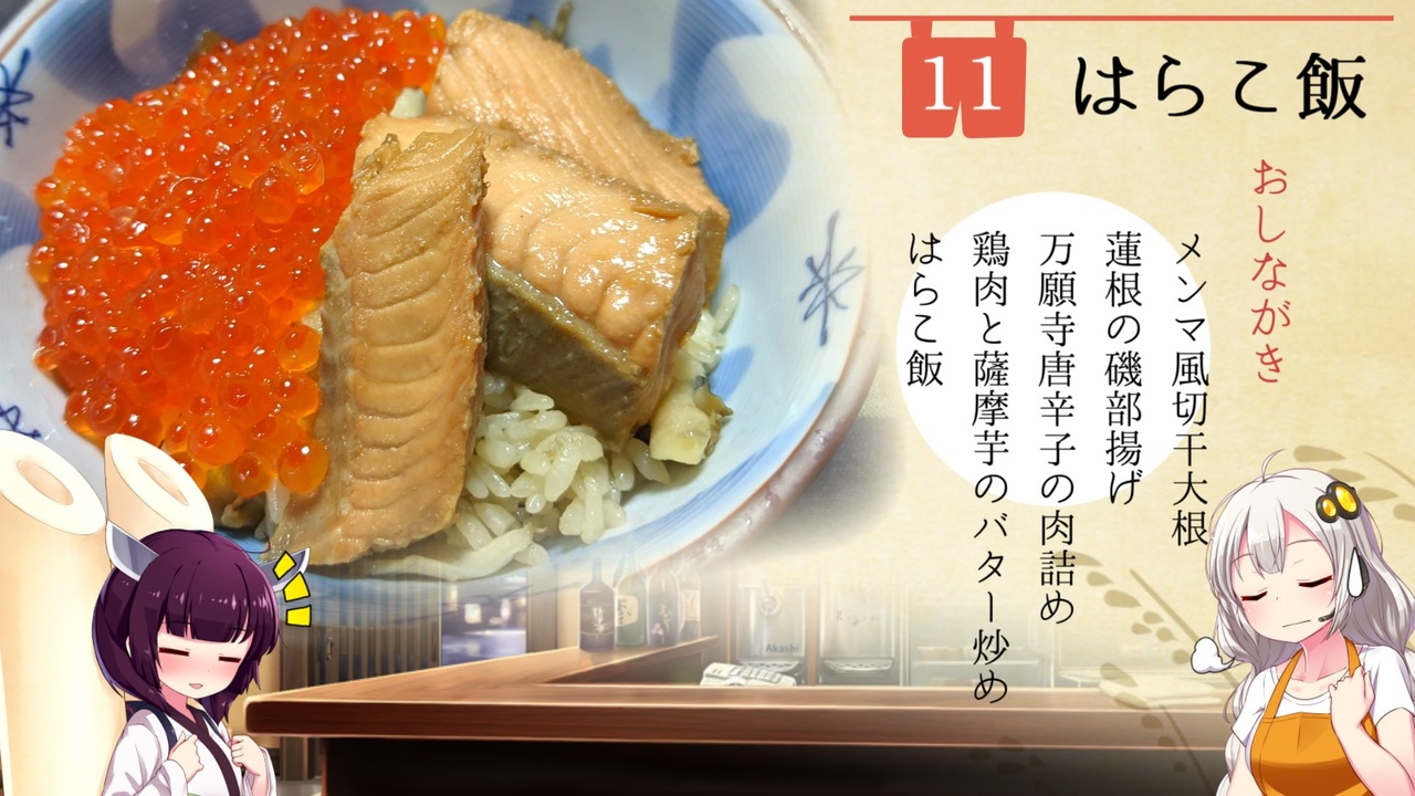涼しくなって燗が美味しい。<br>前半変化球、後半真っすぐの構成。<br><br>前: <a href="https://www.nicovideo.jp/watch/sm39224846" class="watch">sm39224846</a><br>次: <a href="https://www.nicovideo.jp/watch/sm39562276" class="watch">sm39562276</a><br><br>居酒家あかりマイリス<br><a href="https://www.nicovideo.jp/mylist/70632106" target="_blank" rel="noopener">mylist/70632106</a><br><br>Twitter<br><a href="https://twitter.com/shirataki_akari" target="_blank" rel="noopener nofollow">https://twitter.com/shirataki_akari</a>