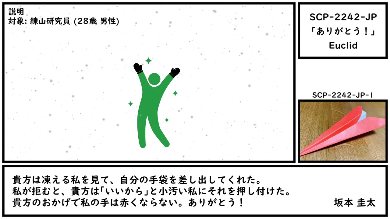 忌々しき"アイツ"、死んだ方が良いに決まってる。<br>あぁ、本当に感謝します。ありがとう!<br><br>本家記事 <a href="http://scp-jp.wikidot.com/scp-2242-jp" target="_blank" rel="noopener nofollow">http://scp-jp.wikidot.com/scp-2242-jp</a><br>作者 Tsukajun<br>SCP財団 <a href="http://ja.scp-wiki.net" target="_blank" rel="noopener nofollow">http://ja.scp-wiki.net</a><br>過去の動画はこちら <a href="https://www.nicovideo.jp/mylist/67620202" target="_blank" rel="noopener">mylist/67620202</a><br>CC-BY-SA 3.0