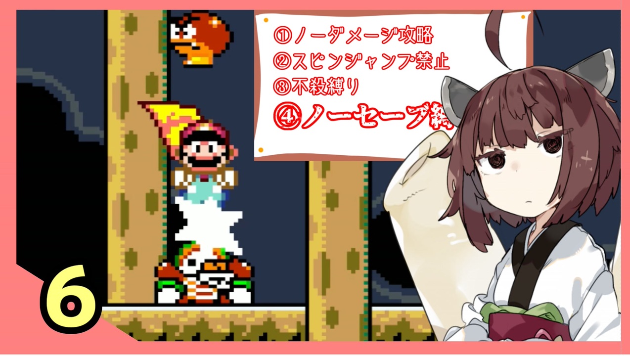 <span style="color: #ff0000; font-size: 18px;">7:15 編集ミス、Dieジェストを挟み込み忘れていました。<br>しかしご安心ください、再走では前回のマントガメステージで二桁回やり直した程度で済みました()<br>16:39 名前読み違えてましたツユナクでなくツナユクです一覧表示が正しいです。申し訳ない。</span><br><br><span style="color: #e69138; font-size: 24px;">きりたん「担保担保タンタンポ~♪」</span><br><br>お待たせしました。コメント返し多め回です。こいついっつも実況しねえな。<br>もし最後の広告者様読み上げで、名前があるのに読み上げられてない方がいたら教えていただけると幸いです。申し訳ない。これが出来るのはまだ広告者様が多すぎない今だけかもですね。<br><br>ー縛り内容ー<br> ①ノーダメージ縛り(強化はよし)<br> ②スピンジャンプ禁止(ブロック破壊は可)<br> ③不殺縛り(定義はpart1にて)<br> <br> <span style="color: #cc0000; font-size: 18px;">④ノーセーブ縛り(ボディブローのようにじわじわ効いてきた)</span><br><br>ちんぽんぽんの方のマリオ縛り⇒マリオ1:<a href="https://www.nicovideo.jp/watch/sm38232189" class="watch">sm38232189</a><br> マリオ2:<a href="https://www.nicovideo.jp/watch/sm38787011" class="watch">sm38787011</a><br> マリオ3:<a href="https://www.nicovideo.jp/watch/sm39299070" class="watch">sm39299070</a><br>――――――――――――――――――――――――――――――――――<br><a href="https://www.nicovideo.jp/watch/sm39332217" class="watch">sm39332217</a>⇐前回:次回⇒<a href="https://www.nicovideo.jp/watch/sm39560209" class="watch">sm39560209</a><br><br>―――――――――――――――――――――――――――――――――――<br>★ゲーム<br>『スーパーマリオワールド』ニンテンドースイッチ版<br>★使用立ち絵<br>からい様⇒【素材】東北きりたん立ち絵:<a href="https://seiga.nicovideo.jp/seiga/im7760810" target="_blank" rel="noopener">im7760810</a><br />★投稿者<br> twitter⇒<a href="https://twitter.com/high18595354" target="_blank" rel="noopener nofollow">https://twitter.com/high18595354</a><br>