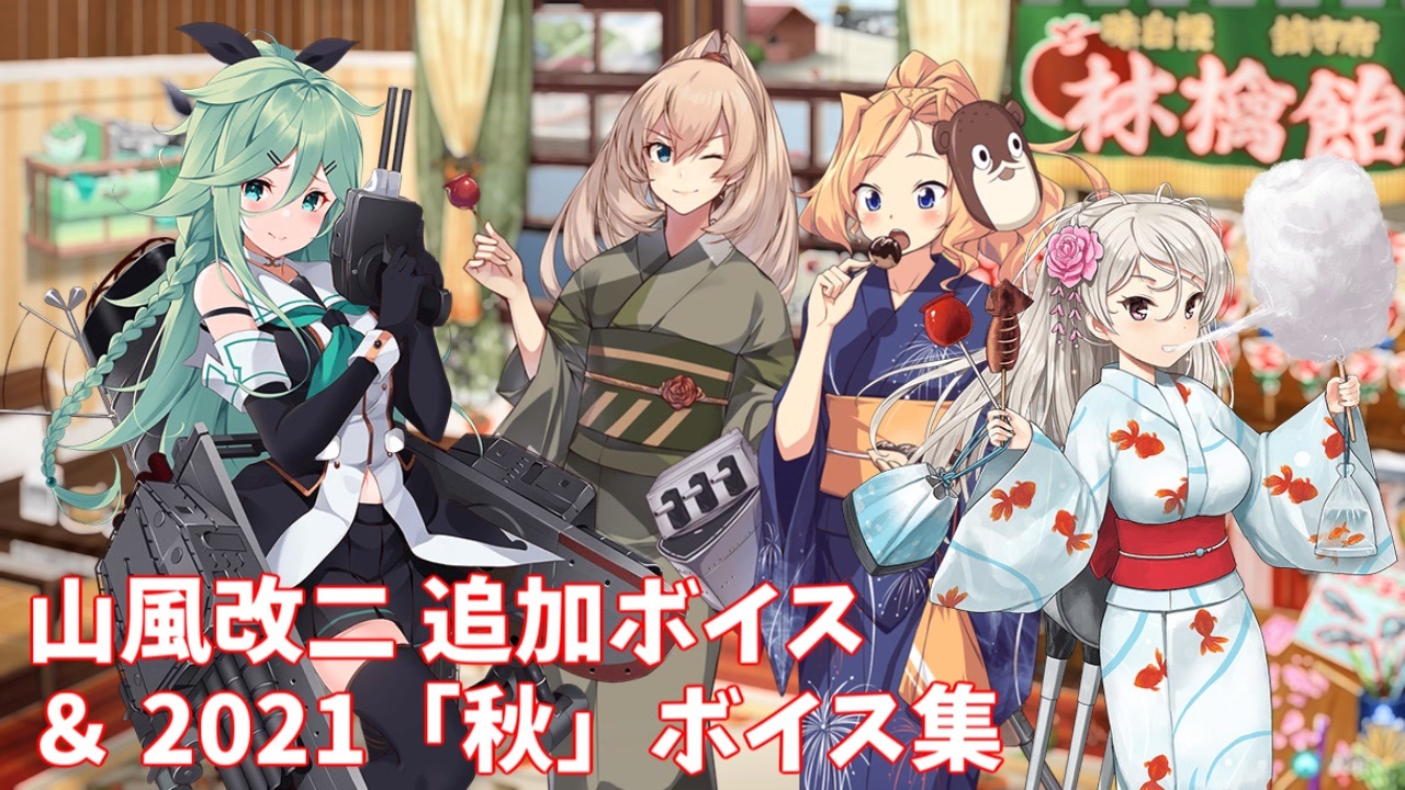 山風改二の追加ボイスと、14隻の新規「夏」ボイス集です。<br>山風改二丁もボイスは共通のようです。<br><br><a href="#" class="seekTime" data-seekTime="00:04" onclick="seekNicoPlayer('#00:04'); return false;">#00:04</a> 山風改二 追加ボイス<br><a href="#" class="seekTime" data-seekTime="00:29" onclick="seekNicoPlayer('#00:29'); return false;">#00:29</a> 限定ボイス 図鑑No.順<br>(雪風 由良 Nelson Honolulu 宗谷 長鯨 竹 桃 Northampton 巻波 涼波 <br>Conte di Cavour 伊203 Victorious)<br><br>【新規絵】<br>(山風改二 山風改二丁 高波改二 Honolulu 長鯨Northampton Northampton改 <br>Conte di Cavour Conte di Cavour nuovo 伊203 Victorious)<br><br>前|2021「夏」ボイス集② (8/4アップデート) <a href="https://www.nicovideo.jp/watch/sm39134732" class="watch">sm39134732</a><br><strong>次|親潮改二 追加ボイス&2021「ハロウィン」ボイス集 (10/15アップデート) </strong><a href="https://www.nicovideo.jp/watch/sm39496064" class="watch">sm39496064</a><br><br>艦これ追加ボイス集 マイリスト(<a href="https://www.nicovideo.jp/mylist/40513442" target="_blank" rel="noopener">mylist/40513442</a>)<br>シリーズ(<a href="https://www.nicovideo.jp/series/34200" target="_blank" rel="noopener">series/34200</a>)<br><br>Youtubeでも活動しています。<br>チャンネル <a href="https://www.youtube.com/channel/UCTYYB9O7hiQlH6Ee-Xxlbpg" target="_blank" rel="noopener nofollow">https://www.youtube.com/channel/UCTYYB9O7hiQlH6Ee-Xxlbpg</a><br>