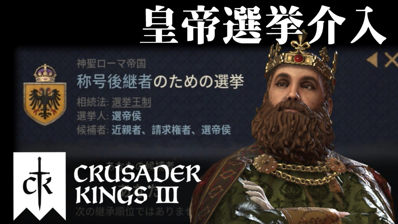 皇帝選挙介入の巻<br>Ver1.44<br><span style="color: #ff0000;">Youtubeチャンネル:<a href="https://www.youtube.com/channel/UCIgzloQ_KfcUN_AcvlxtDdg" target="_blank" rel="noopener nofollow">https://www.youtube.com/channel/UCIgzloQ_KfcUN_AcvlxtDdg</a></span><br><span style="color: #0000ff;">Twitter:<a href="https://twitter.com/proffesor2sk" target="_blank" rel="noopener nofollow">https://twitter.com/proffesor2sk</a></span><br>※その他のプレイ講座はこちら:<a href="https://www.nicovideo.jp/mylist/34307950" target="_blank" rel="noopener">mylist/34307950</a><br>[Crusader Kings 3] Copylight © [2020] Paradox Interactive AB. www.paradoxplaza.com<br><br>使わせていただいた素材サイト<br>フォント:「M+」「装甲明朝」「たぬき油性マジック」「しねきゃぷしょん」<br>効果音:「効果音ラボ」「効果音辞典」「OtoLogic」<br>BGM:<br>Skaga & Marked by Alexander Nakarada | <a href="https://www.serpentsoundstudios.com" target="_blank" rel="noopener nofollow">https://www.serpentsoundstudios.com</a><br>Music promoted by <a href="https://www.free-stock-music.com" target="_blank" rel="noopener nofollow">https://www.free-stock-music.com</a><br>Attribution 4.0 International (CC BY 4.0)<br><a href="https://creativecommons.org/licenses/by/4.0/" target="_blank" rel="noopener nofollow">https://creativecommons.org/licenses/by/4.0/</a>