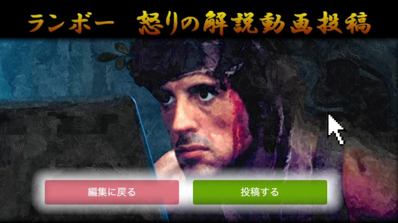 解説動画ではないですが「解説動画の事」なので「ニコニコ動画講座」に居させてください。<br><br>とある人と「ランボー怒りの●●」話をしていて、解説動画版を作りたくなって、ついやってしまった。<br>(こんな事してる場合じゃないのに)<br><br>この動画はあくまで「ランボー」が動画投稿をした場合のフィクションです。<br>なのでセリフは彼の発言です。<br>私は無関係です。<br>けど解説動画投稿者、いや多くの投稿者は彼の慟哭が分かるはず!<br>かも。あるいは。<br><br>とある人の【ゆっくり文庫】ランボー:怒りの初投稿<br><a href="https://www.nicovideo.jp/watch/sm37703392" class="watch">sm37703392</a><br />うp主のクリ奨扱いの番組(ギフト)<br>●動画投稿講座(海兵隊式)<br><a href="https://www.nicovideo.jp/watch/sm41183459" class="watch">sm41183459</a><br><br>●ほしいものリスト(同じものでも全然嬉しい)<br><a href="https://www.amazon.co.jp/hz/wishlist/ls/20X2QKDPSW451?ref_=wl_share" target="_blank" rel="noopener nofollow">https://www.amazon.co.jp/hz/wishlist/ls/20X2QKDPSW451?ref_=wl_share</a><br>●匿名で送る方法<br><a href="https://appllio.com/amazon-wish-list" target="_blank" rel="noopener nofollow">https://appllio.com/amazon-wish-list</a><br><br>うp主の動画<br>ゆっくりのワイドショー⇒<a href="https://www.nicovideo.jp/mylist/45200880" target="_blank" rel="noopener">mylist/45200880</a><br>ゆっくりコンパクト劇場⇒<a href="https://www.nicovideo.jp/mylist/67330756" target="_blank" rel="noopener">mylist/67330756</a><br>ゆっくりロードショー⇒<a href="https://www.nicovideo.jp/mylist/51596849" target="_blank" rel="noopener">mylist/51596849</a><br>おもちゃ箱⇒<a href="https://www.nicovideo.jp/series/265908" target="_blank" rel="noopener">series/265908</a><br>ようつべセブンのチャンネル<br><a href="http://www.youtube.com/c/sevenyoutube" target="_blank" rel="noopener nofollow">http://www.youtube.com/c/sevenyoutube</a><br><br>ニコニコ大百科 ゆっくりのワイドショー<br><a href="https://dic.nicovideo.jp/id/5337230" target="_blank" rel="noopener nofollow">https://dic.nicovideo.jp/id/5337230</a><br><br>ニコニコ大百科 ゆっくり文庫リスペクト<br><a href="https://dic.nicovideo.jp/id/5701480" target="_blank" rel="noopener nofollow">https://dic.nicovideo.jp/id/5701480</a>