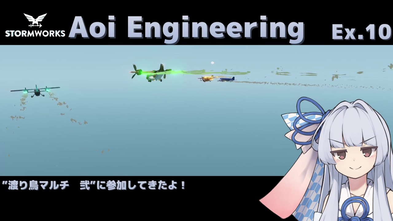 <strong>Extra.10 "渡り鳥マルチ 弐"に参加してきたよ!</strong><br><br>実はひそかに憧れだったので、参加できてすごくうれしかったです。<br>歌ボも初挑戦…でもやっぱり音楽赤点民にはこれが限界だった。。。でも楽しかったです!<br><br>サーチアンドデストロイDLCがもう間もなく?の<br>Stormworks:Build and Rescue : <a href="https://store.steampowered.com/app/573090/Stormworks_Build_and_Rescue/" target="_blank" rel="noopener nofollow">https://store.steampowered.com/app/573090/Stormworks_Build_and_Rescue/</a><br><br>このシリーズ : <a href="https://www.nicovideo.jp/series/126180" target="_blank" rel="noopener">series/126180</a><br>このシリーズでいただいたニコ静支援絵クリップ : <a href="https://seiga.nicovideo.jp/clip/3233979" target="_blank" rel="noopener">clip/3233979</a><br><br>その他part1マイリス:<a href="https://www.nicovideo.jp/mylist/64052167" target="_blank" rel="noopener">mylist/64052167</a><br><br>〇原曲<br>[Alexandros] - ワタリドリ (MV)<br><a href="https://youtu.be/O_DLtVuiqhI" target="_blank" rel="noopener nofollow">https://youtu.be/O_DLtVuiqhI</a><br><br>〇カラオケ音源<br>カラオケ歌っちゃ王<br><a href="https://www.youtube.com/channel/UC1tk9F5-MGXEq4LWnjmrtpA" target="_blank" rel="noopener nofollow">https://www.youtube.com/channel/UC1tk9F5-MGXEq4LWnjmrtpA</a><br><br>おうたのFull版上げました→ <a href="https://www.nicovideo.jp/watch/sm39791673" class="watch">sm39791673</a><br><br>☆別視点動画<br>KOTONOHAレスキュー(虹沢コダマ さん) <a href="https://www.nicovideo.jp/watch/sm39441863" class="watch">sm39441863</a> <span style="font-size: 10px;">あのヒタキ科来やがった!の元ネタ</span><br>いきぬき開発記録 番外編その2(やまきむ さん) <a href="https://www.nicovideo.jp/watch/sm39494875" class="watch">sm39494875</a>